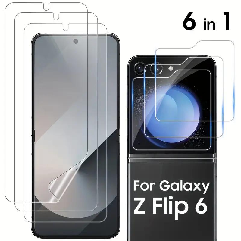 6 шт. 3+3 Flip 6 / Flip 5 HD Small Screen Protector + мягкая гидрогелевая пленка + пленка для объектива для Samsung Galaxy Z Flip 6 / Flip 5 5G прозрачная защитная пленка Flip6 Flip5