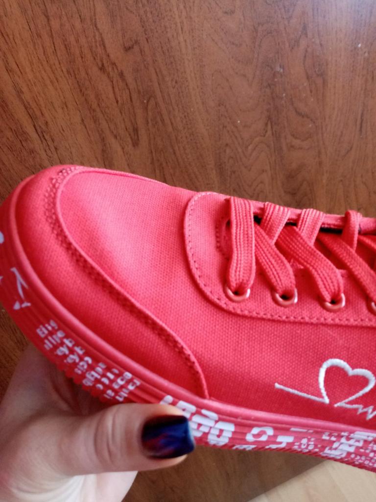 На свой размер 37й я сначала заказала 38, потому , что у меня стопа широкая и собственно 37 подходит редко. Но кроссовки оказались безнанежно малы. Пришлось отдать их внучке. Второй раз заказала 40й. Этот размер пришелся как раз на мой 37й. Модель первая понравилась больше по качеству ткани верха: бархатистая, похожа на замшу- восторг!. Вторая пара сделана из синтетического текстиля просто под рогожку. Все равно цвет обоих моделей красивый ярко красный и широкие стильные шнурки. Надеюсь, что качество при эксплуатации будет высокое. Оцениваю все на 5 баллов. Еще продавец прислал подарок - стильное колечко под золото Спасибо за внимание!. Рекомендую