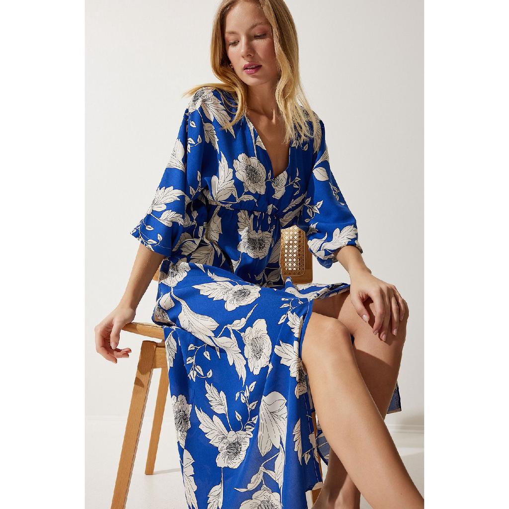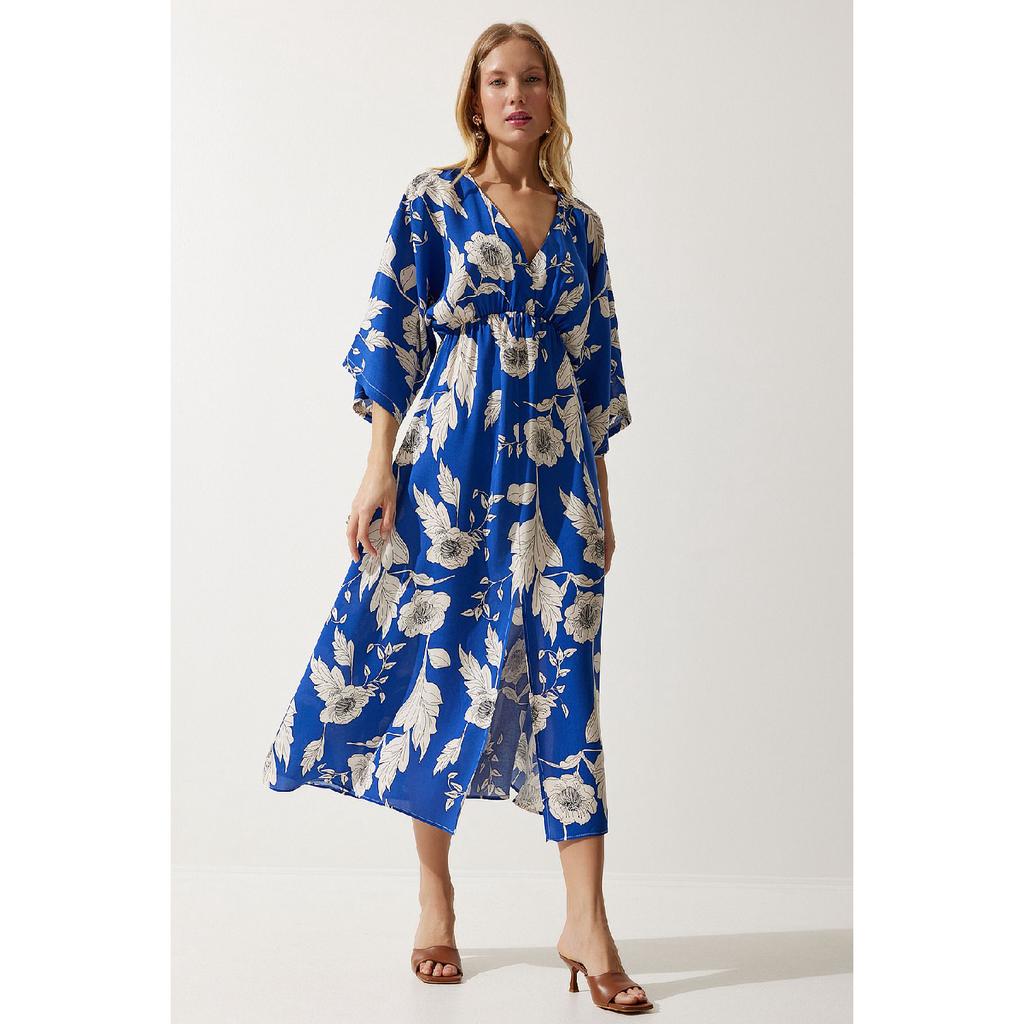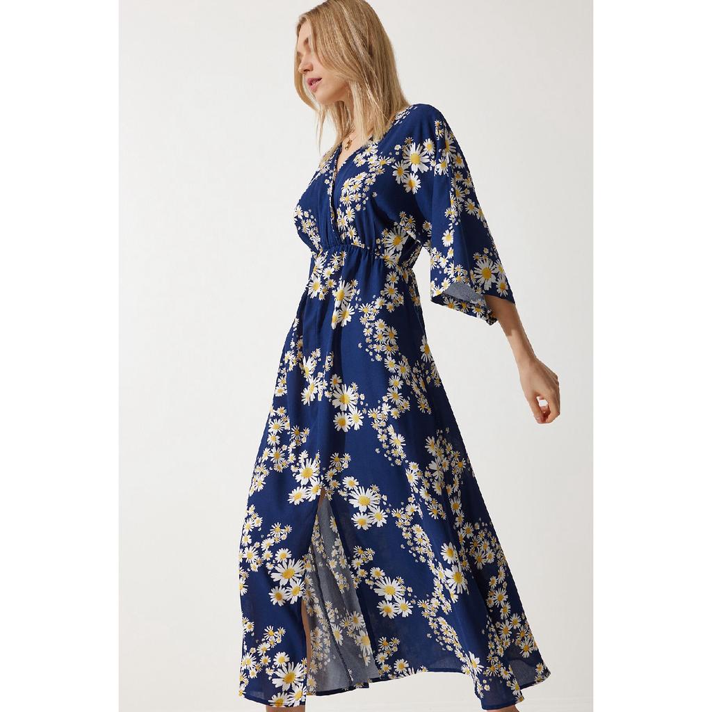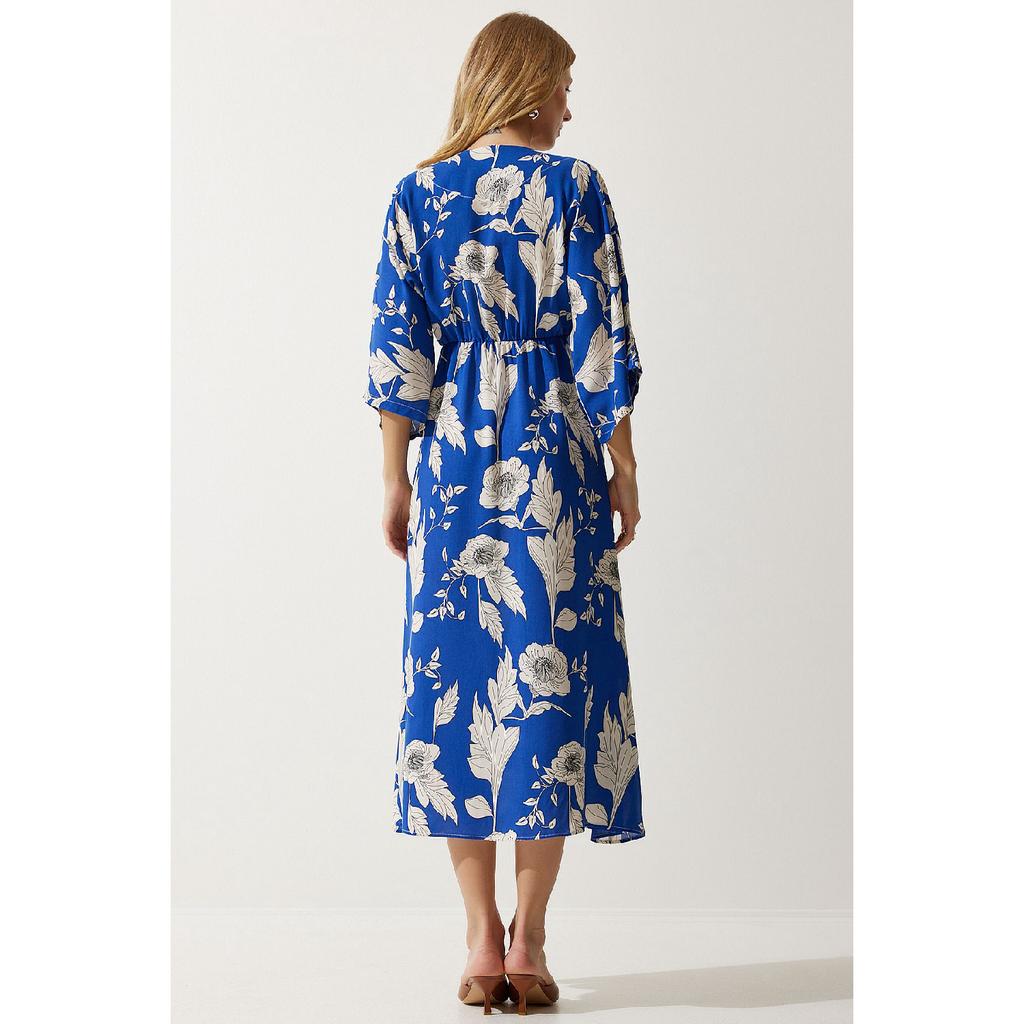 Женское оранжево-синее летнее платье из вискозы с запахом и воротником Dk00166