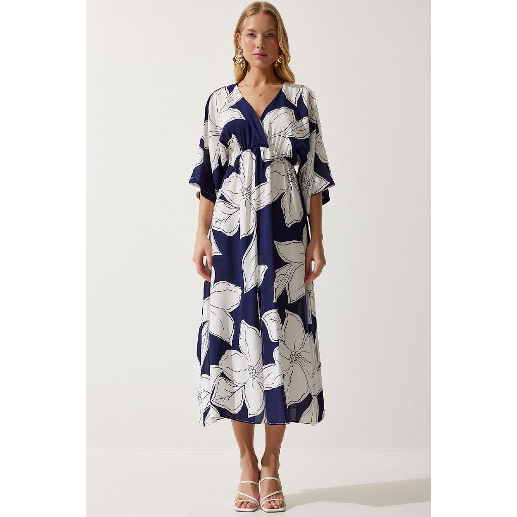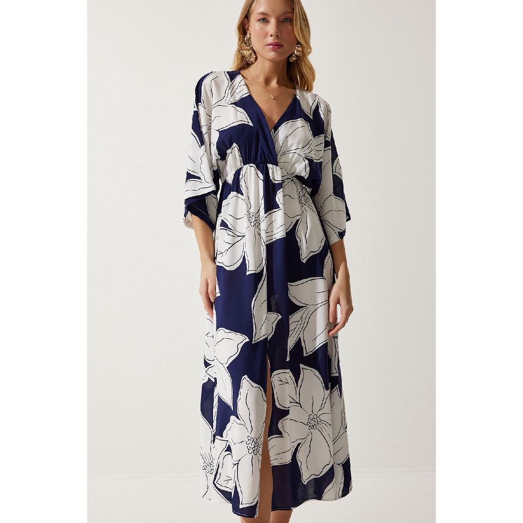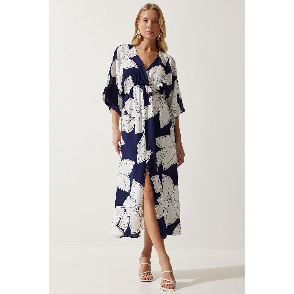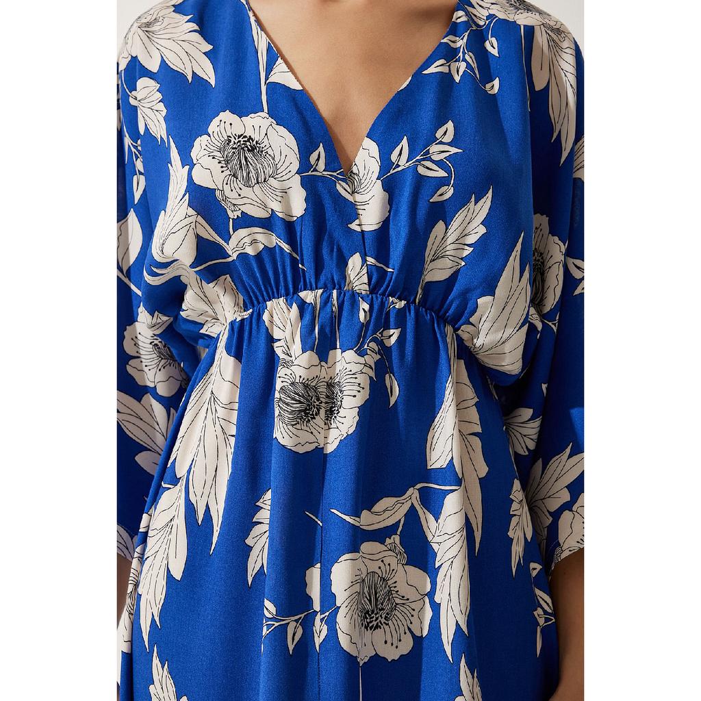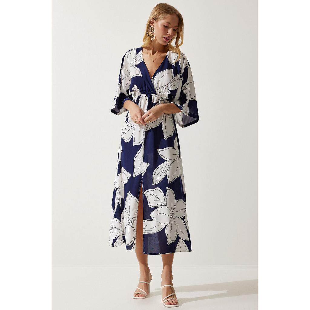Женское оранжево-синее летнее платье из вискозы с запахом и воротником Dk00166