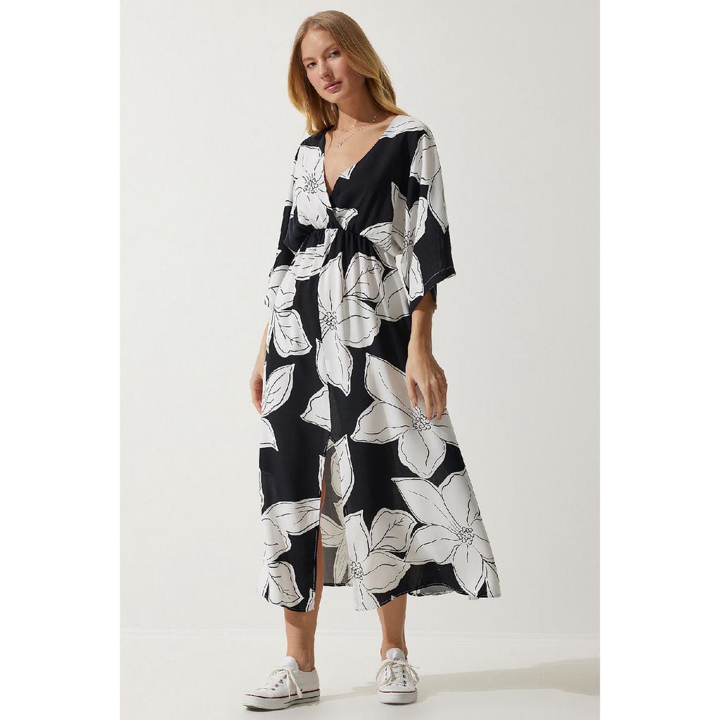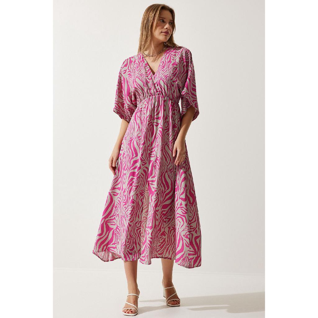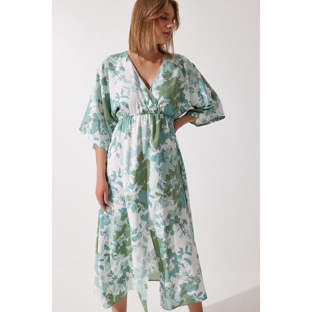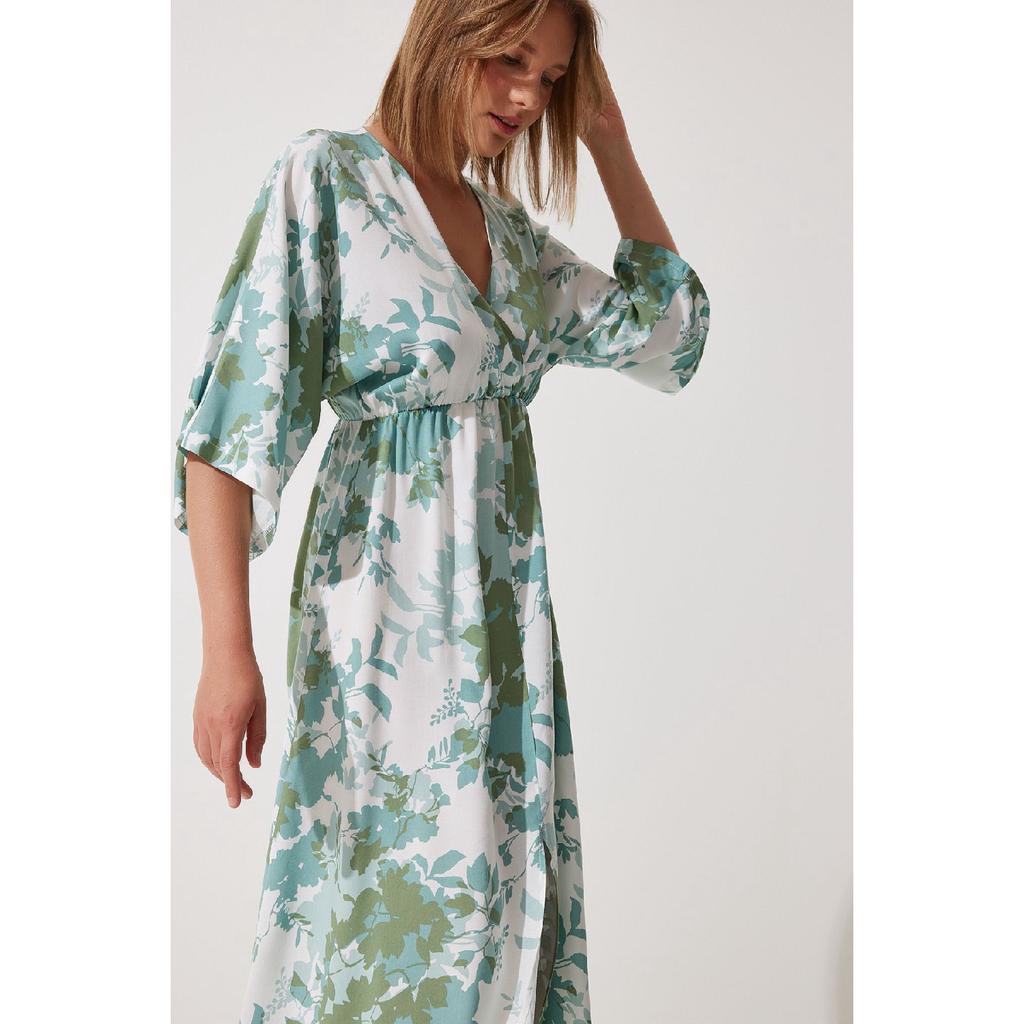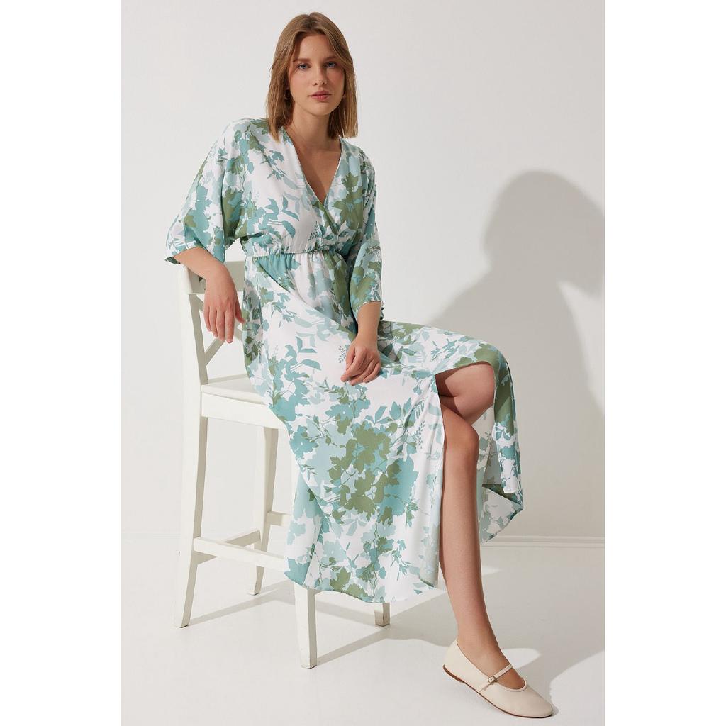 Женское оранжево-синее летнее платье из вискозы с запахом и воротником Dk00166