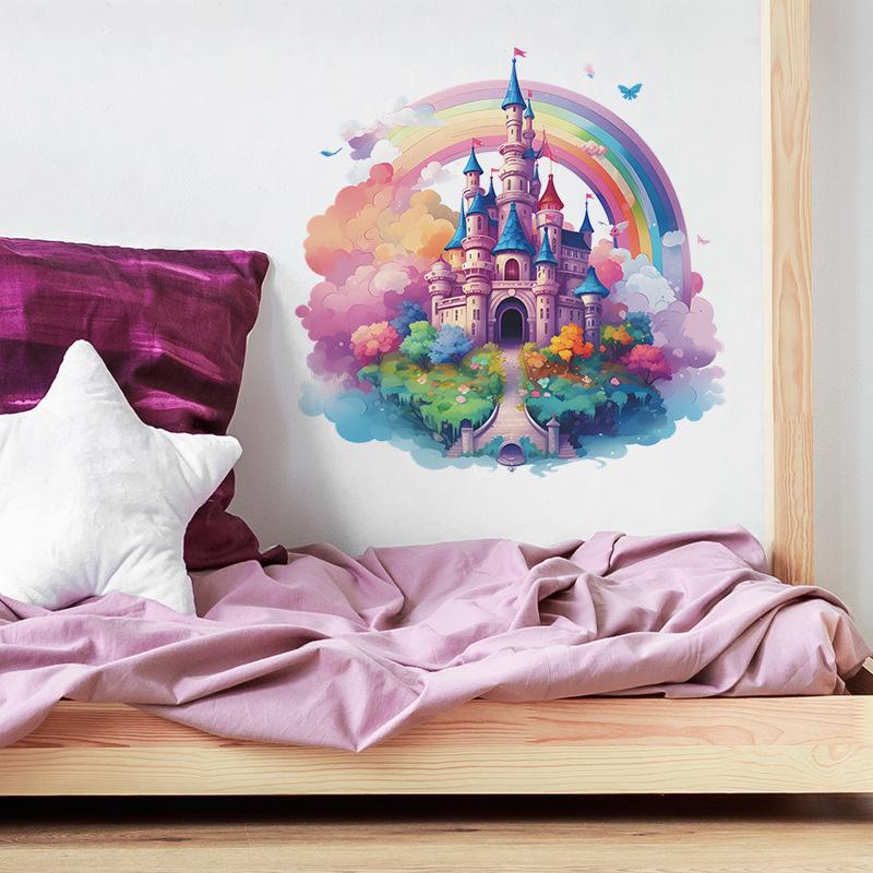 Наклейки на стену «Замок мечты» для девочек, детская комната, красочные радужные наклейки на стену, декор для детской комнаты, спальни