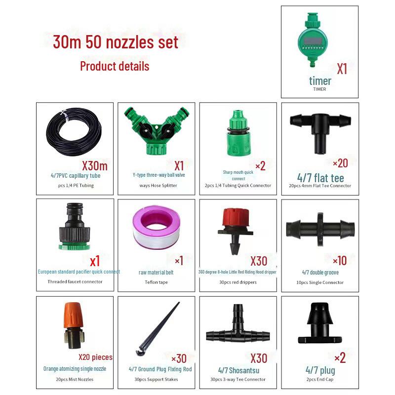 30m DIY Drip Irrigation Set for Gardening - Automatic Watering System for Plants