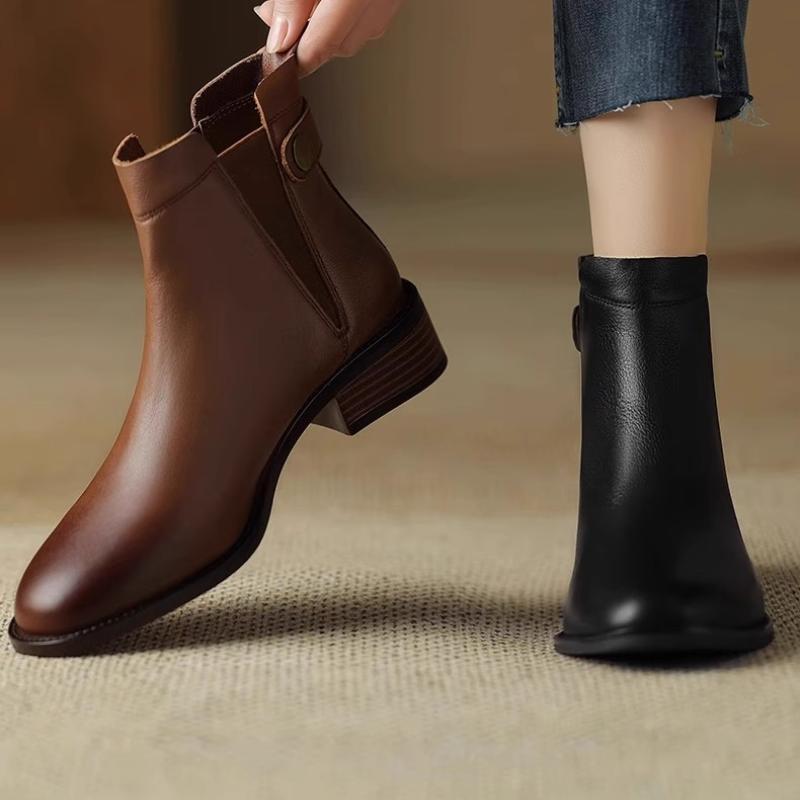 Короткие ботинки в английском стиле для женщин, новые ботинки челси из мягкой кожи на толстом каблуке, весенне-осенние ботильоны, французская офисная обувь