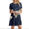 2024 Летнее женское платье с принтом карты мира, коротким рукавом и круглым вырезом, повседневное свободное платье, модная уличная женская одежда больших размеров, платья
