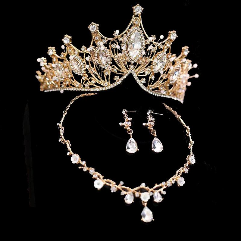 Свадебная тиара, корона, ожерелье, серьги, комплект из трех частей, барочная королева, корона на день рождения, корона для волос — купить товар онлайн с бесплатной доставкой по всему миру!
