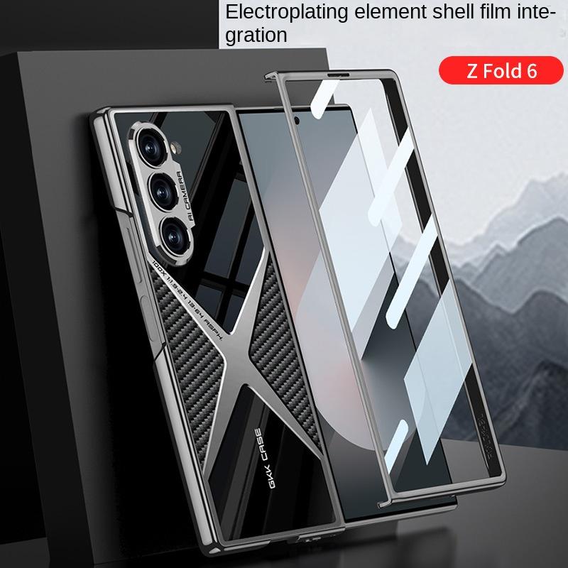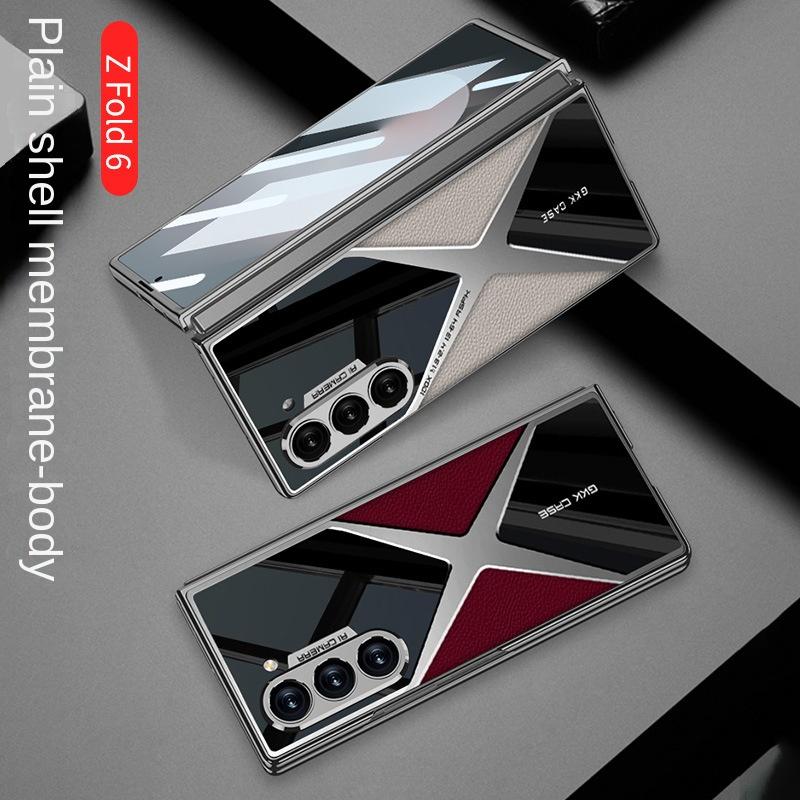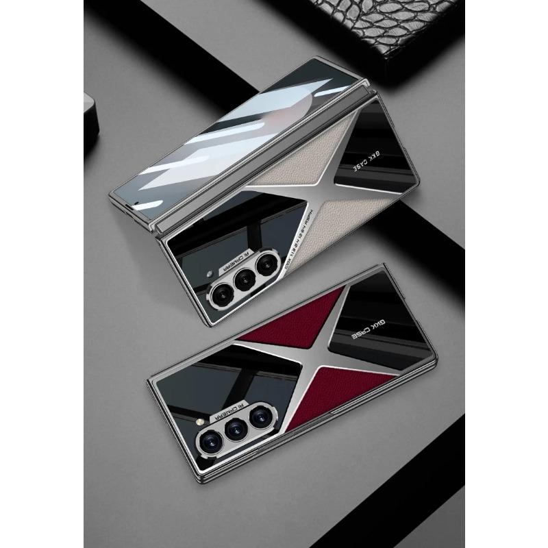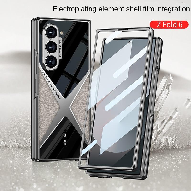 Гальванический кожаный чехол для телефона для Samsung Galaxy Z Fold 6 5 4 3 Fold6 Fold5 Fold4 Fold3 5G Жесткий защитный чехол-пленка