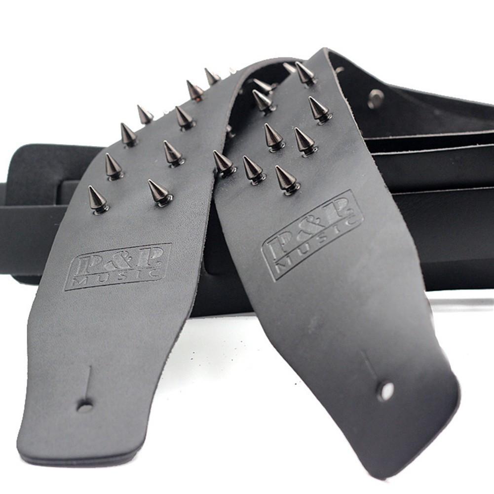 Черная кожаная электрогитара ручной работы, с заклепками PIKE, регулируемый ремень — купить товар онлайн с бесплатной доставкой по всему миру!