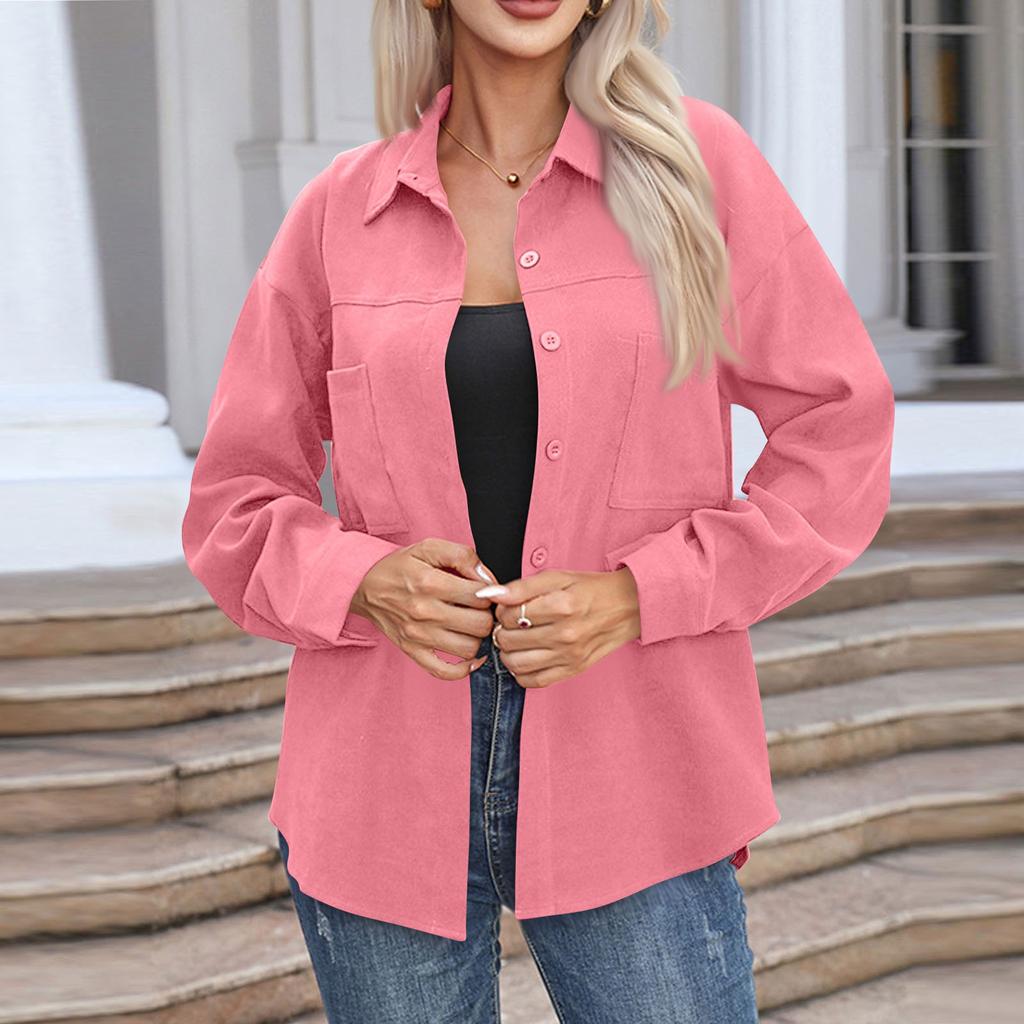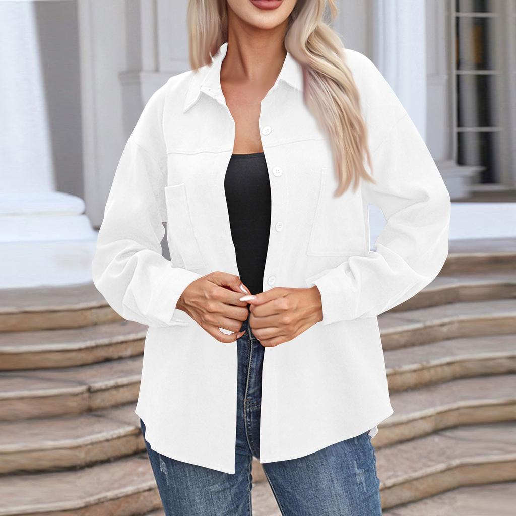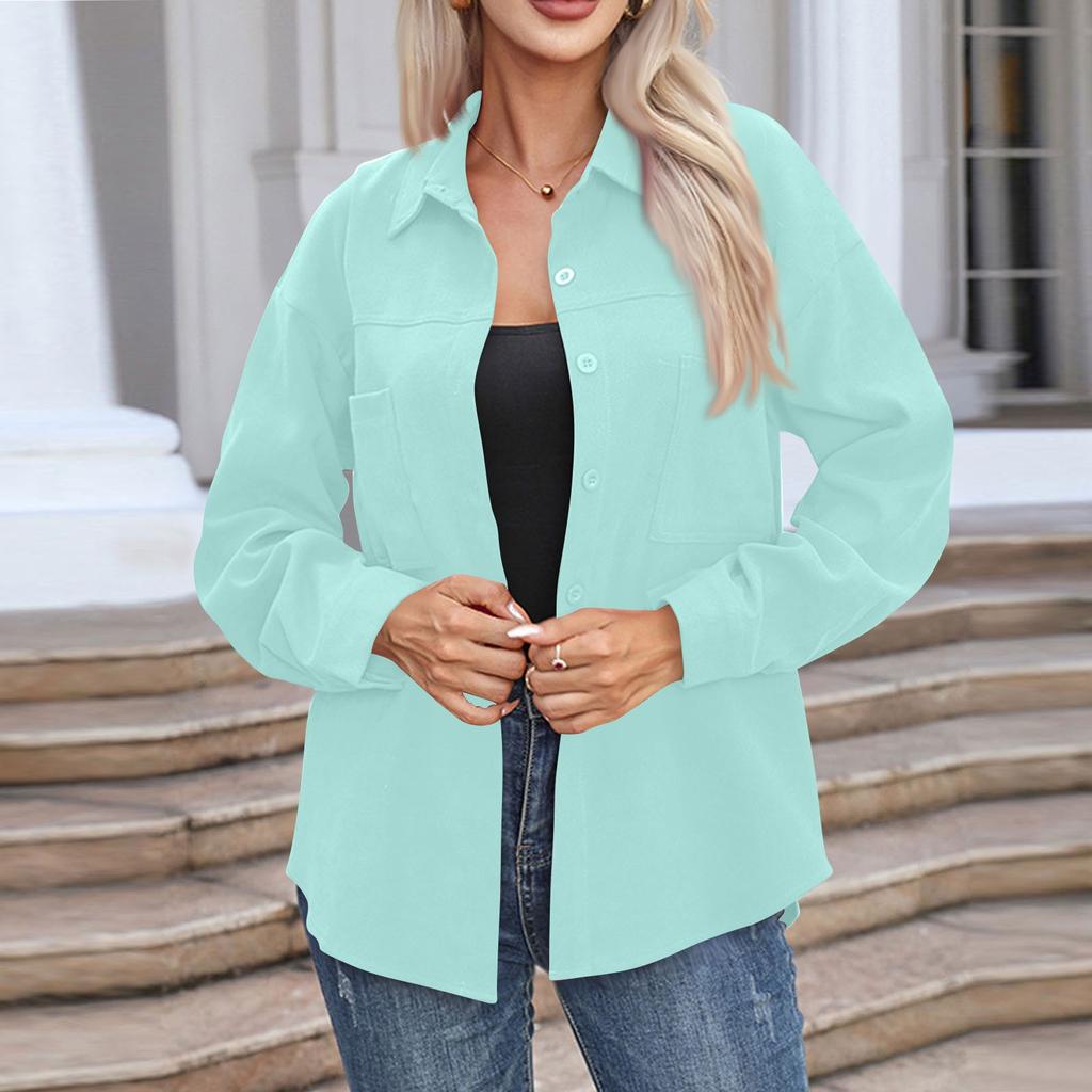 Женская повседневная рубашка средней длины с длинным рукавом, однотонные топы