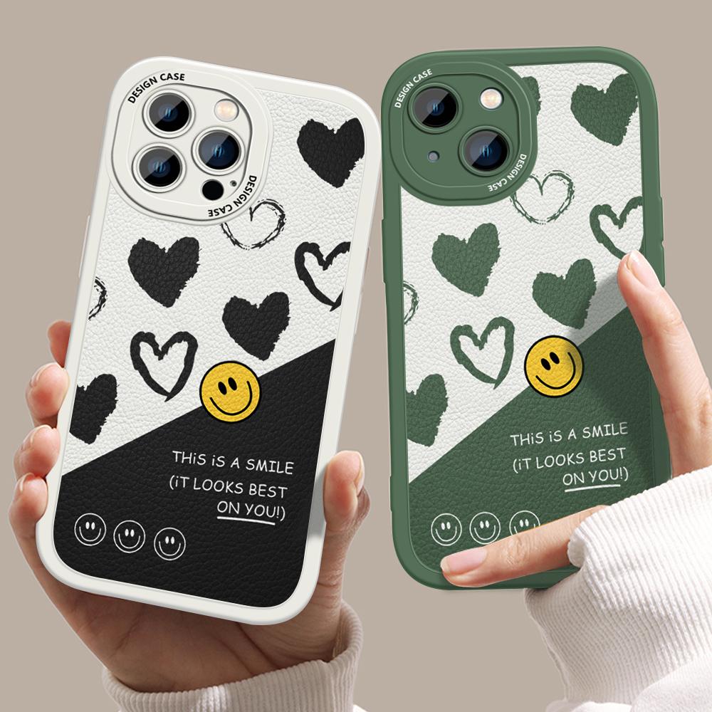 Тонкий кожаный чехол-накладка с рисунком в виде мультяшной улыбки в стиле INS из искусственной кожи для Samsung Xiaomi Poco Redmi