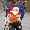 Новый год мужской рождественский Санта праздничный узор мода повседневный О воротник длинный рукав свободный уличный индивидуальный веселый плюс размер топ