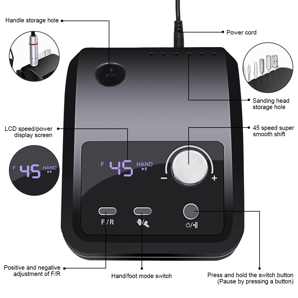45000 об/мин электрическая дрель для ногтей электрическая пилка HD дисплей металлическая маникюрная ручка профессиональный токарный станок для ногтей шлифовальный станок