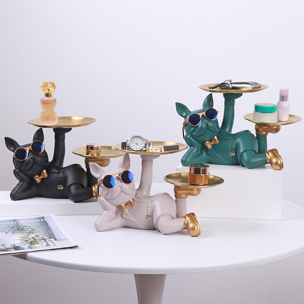 Бульдог Искусство Фигурки с поддоном Смола Стол Украшение Вход Ремесла Конфеты Конфеты Мелочи Бытовые принадлежности для офисной кофейни