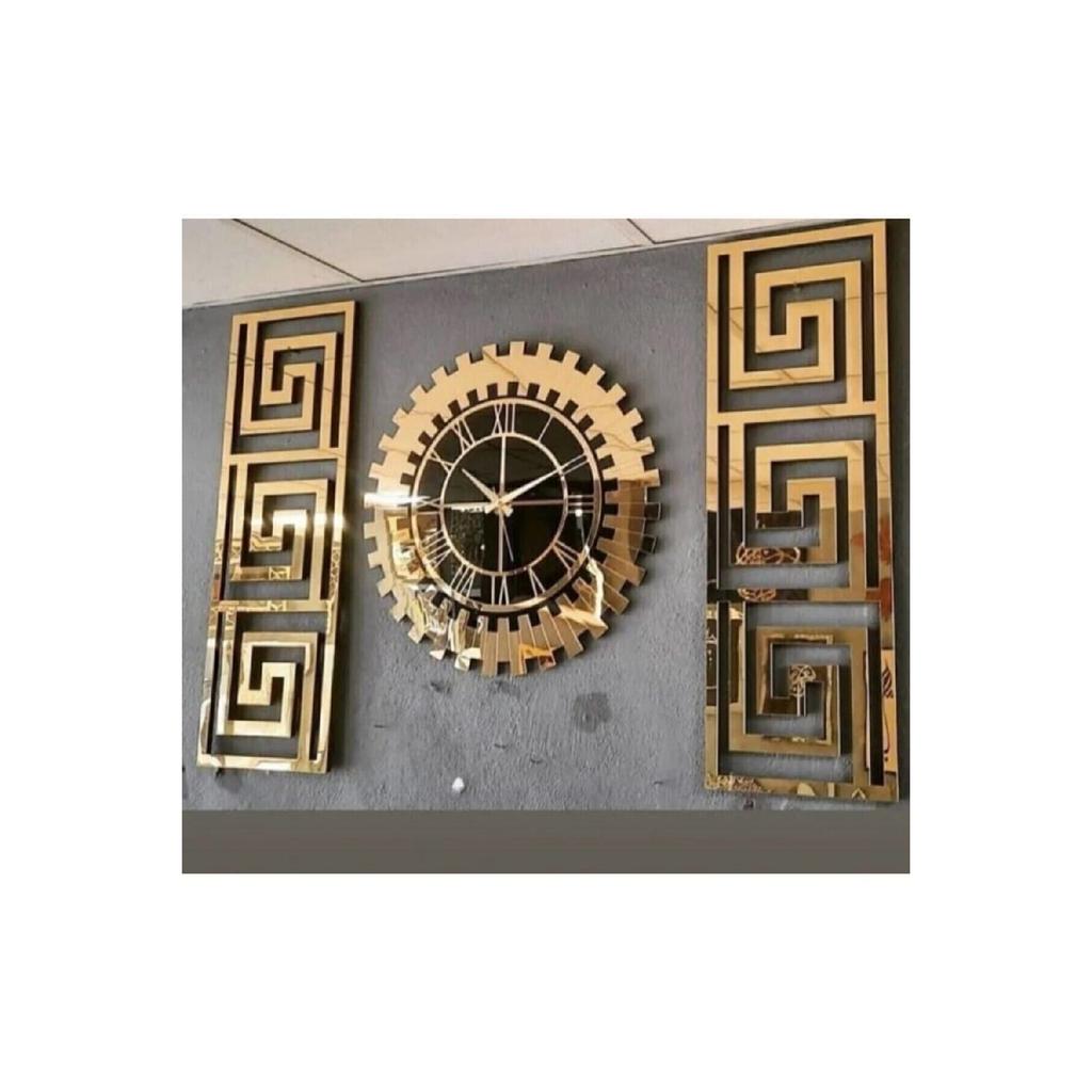 Декоративный набор Xl из 3 настенных часов и декора из плексигласа с золотым зеркальным 3D тиснением и ручной росписью. Большой размер