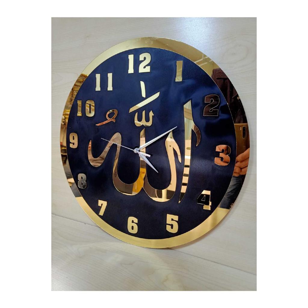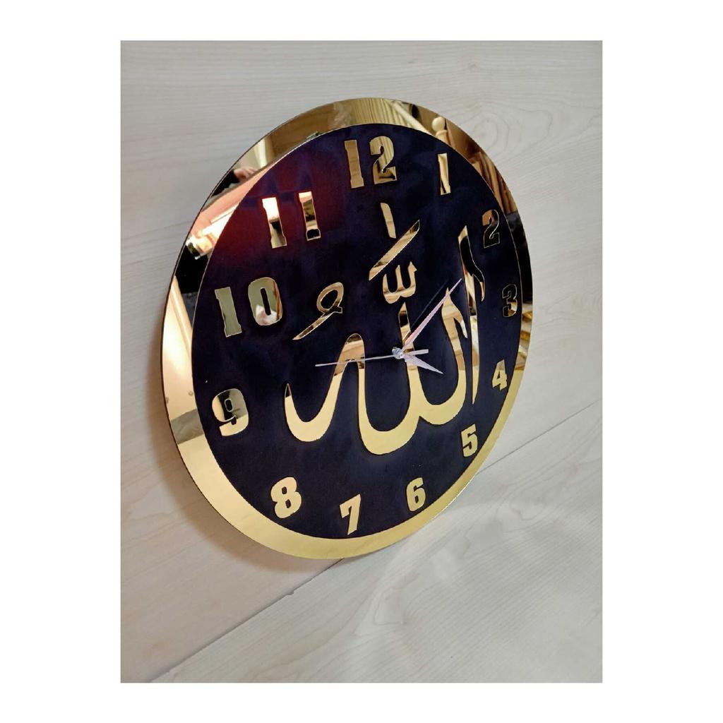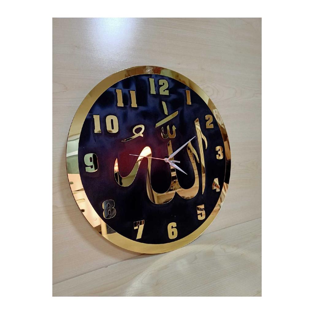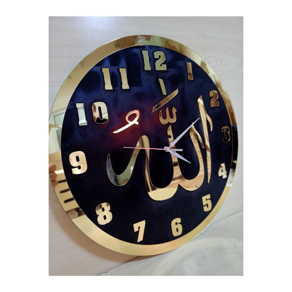 Черные деревянные настенные часы с надписью Аллаха из золотого плексигласа