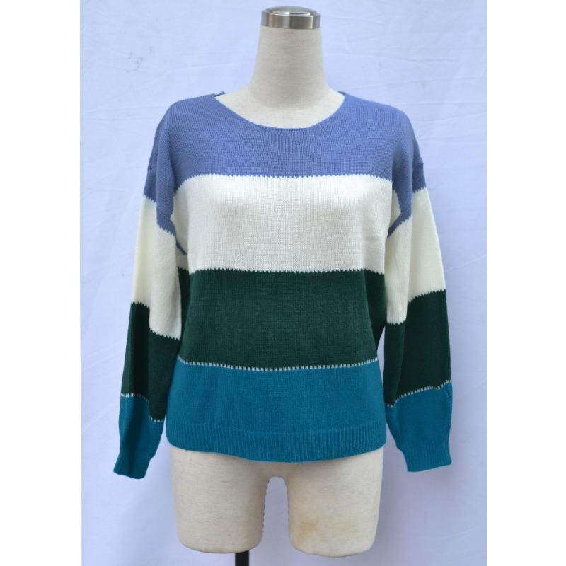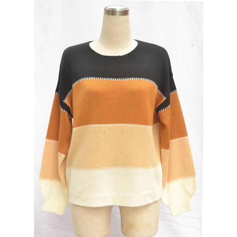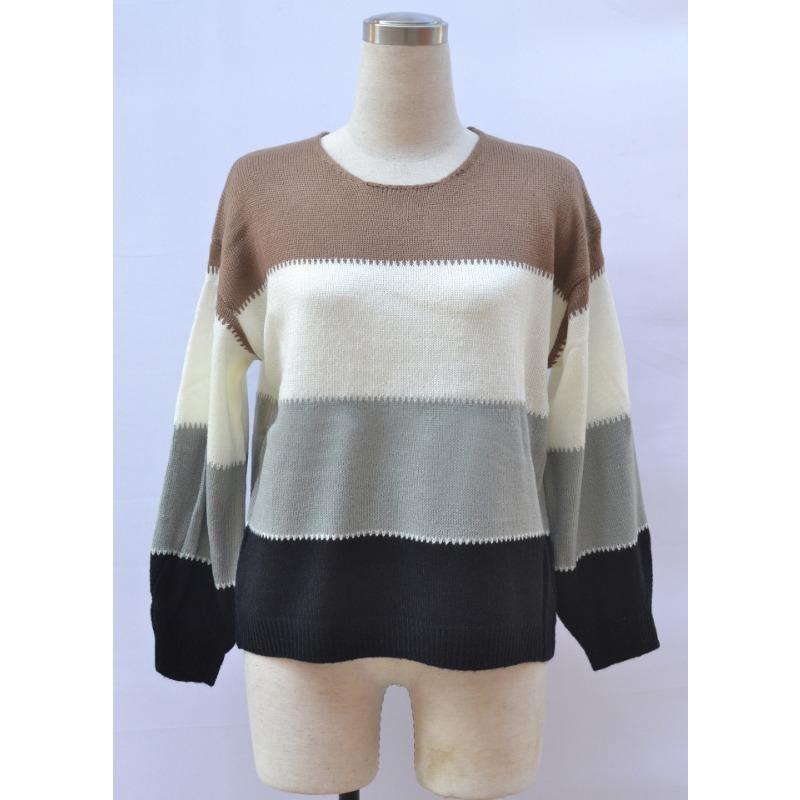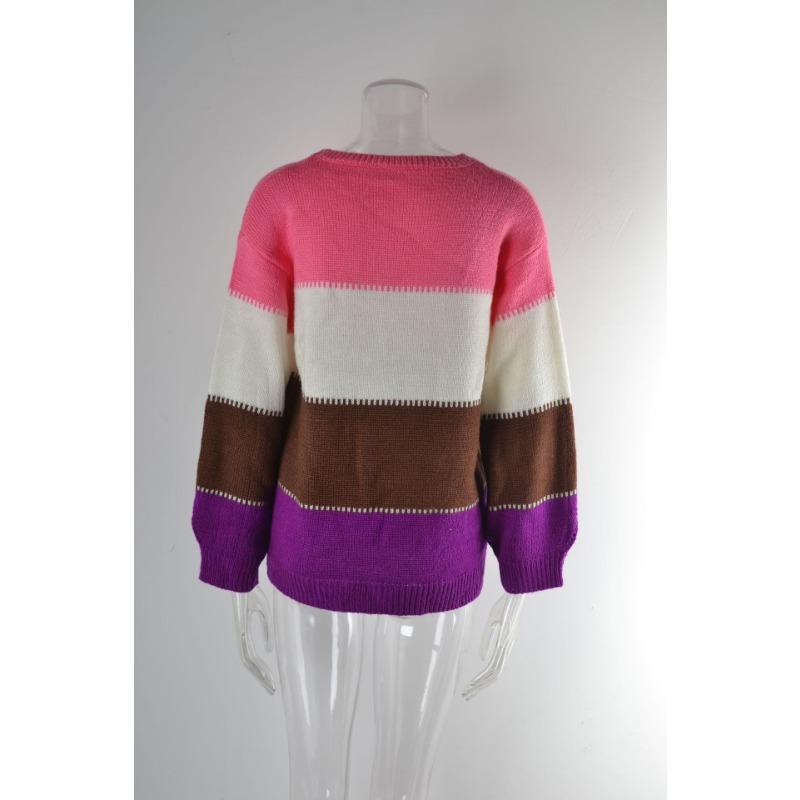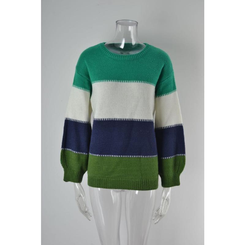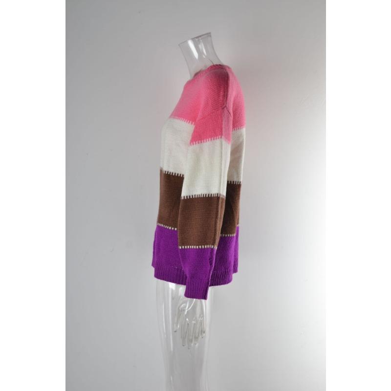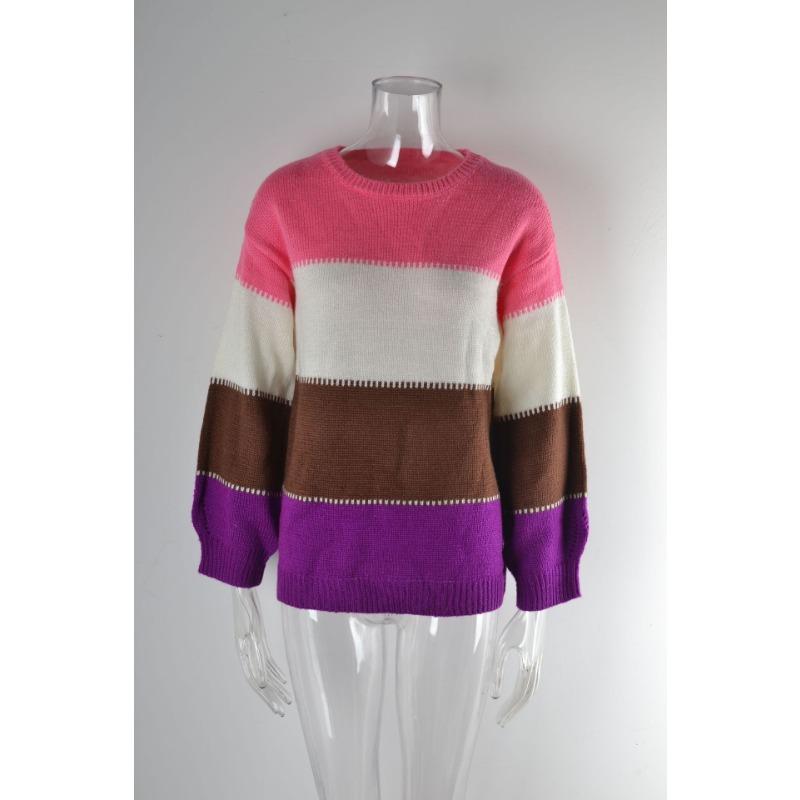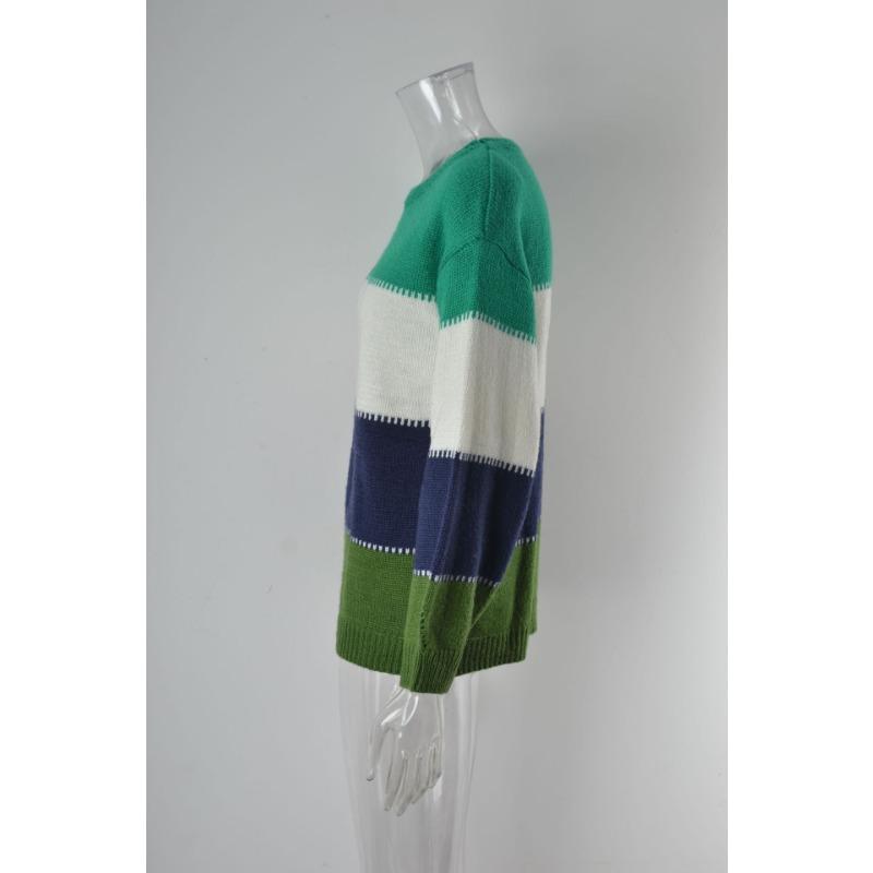 Женский осенне-зимний джемпер свободного кроя с круглым вырезом средней длины с цветными блоками большого размера