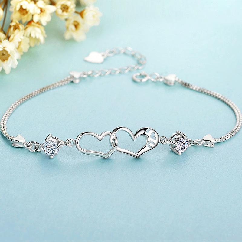 Браслет из стерлингового серебра 925 пробы, женские аксессуары в форме двойного сердца, ювелирные изделия, женский браслет для пары из стерлингового серебра, ювелирные изделия для рук