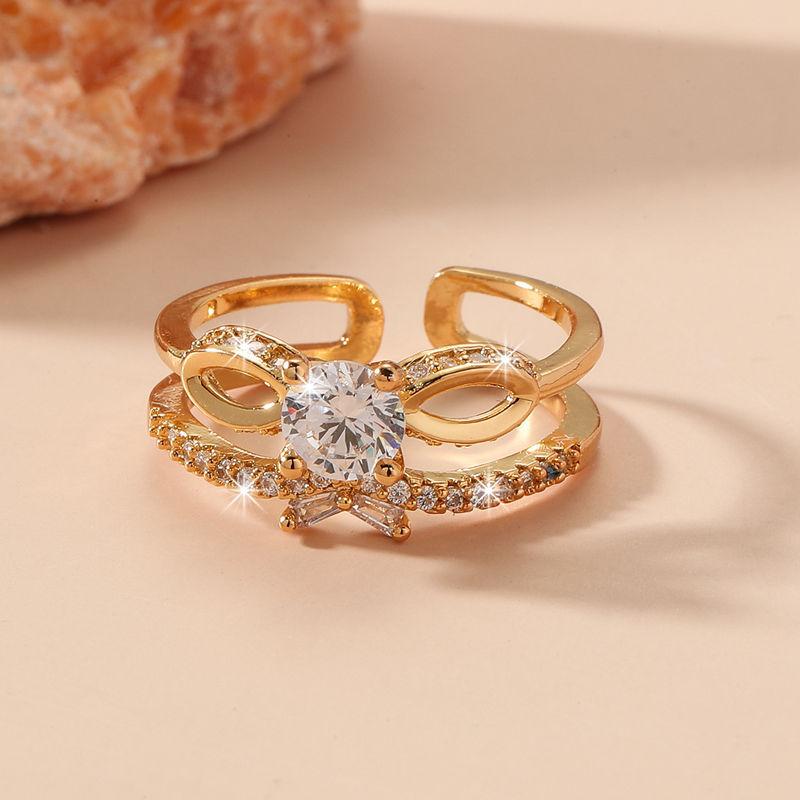 Кольцо GemChic для женщин, модное, индивидуальное, с открытым бантом, с вставленным цирконием, изысканное, легкое, роскошное, с индексом, ювелирное украшение на день рождения, Рождество, подарок