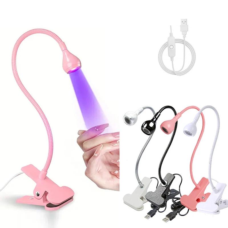 Профессиональные ультрафиолетовые лампы с клипсой на металлической трубке УФ-лампа USB Мини УФ-свет для отверждения геля Настольные лампы Сушилка для ногтей DIY Вращение на 360 °