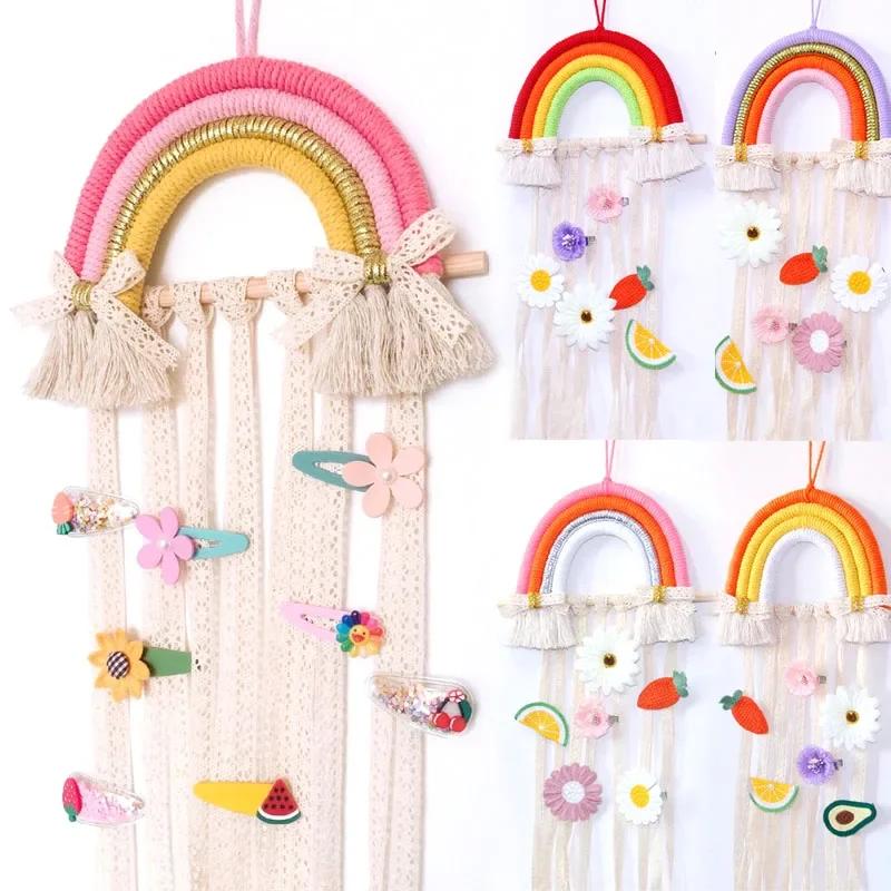 INS Радужные детские заколки для волос Organizadores, аксессуары для волос, заколка для волос, держатель для хранения, декор, вешалка, полоска, декор для комнаты для девочек