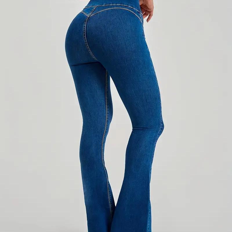 Женские брюки с высокой талией, утягивающие, расклешенные джинсы