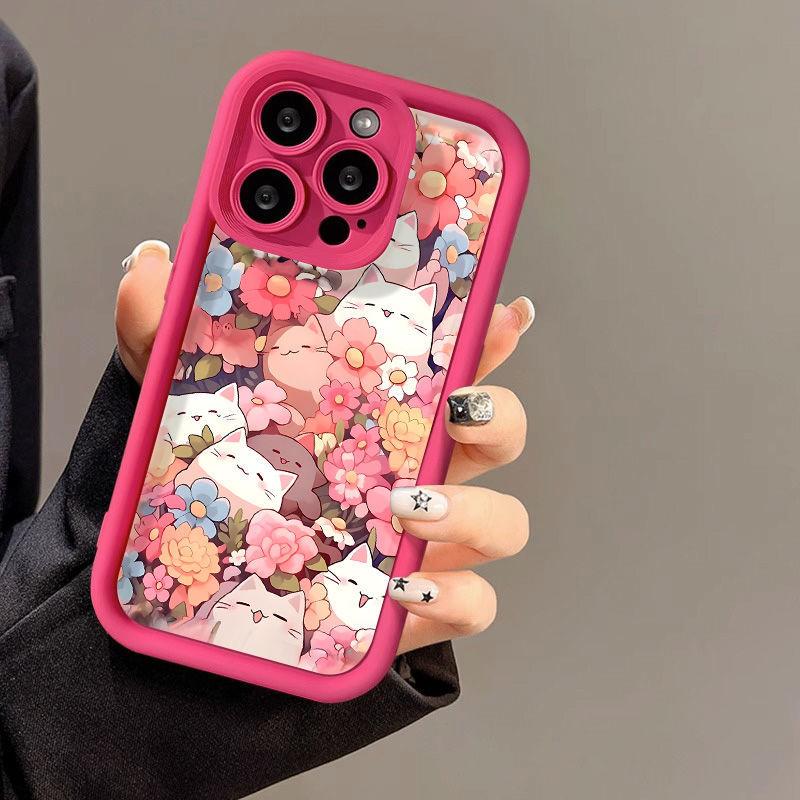 Чехол для телефона iPhone 15 14 13 12 11 Pro Max X XR XS Max 7 8 Plus SE3 с рисунком милого кота, розовыми цветами, чехлы для девочек, силиконовый противоударный бампер, задняя крышка — купить товар онлайн с бесплатной доставкой до всему миру!
