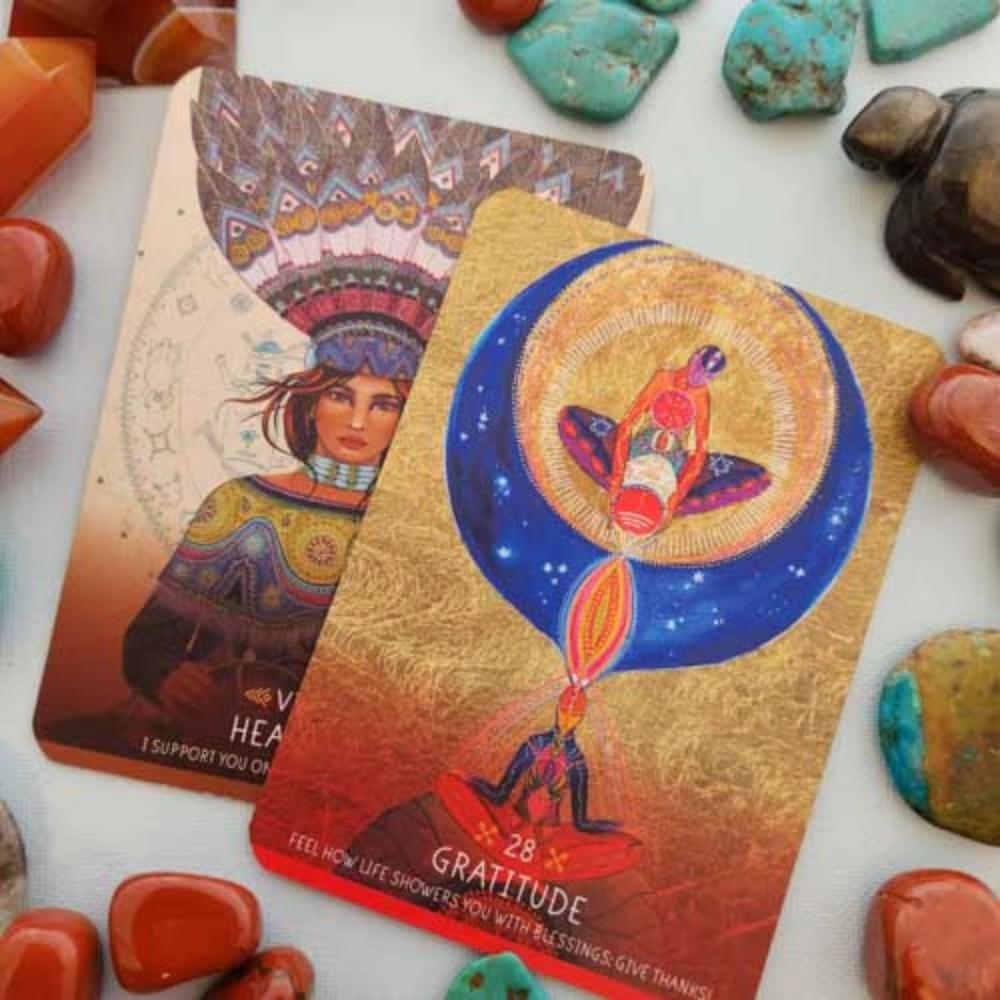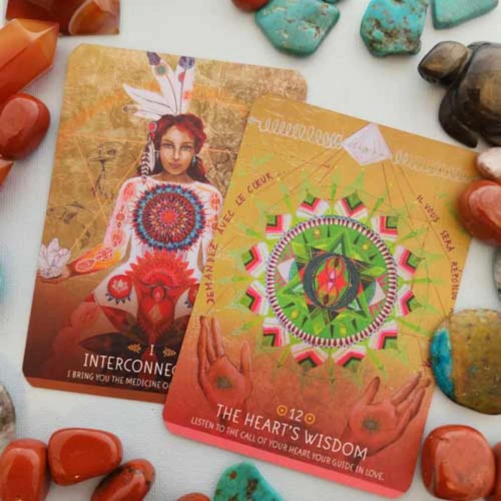 Основанный на шаманских учениях, традициях первых народов и ритуальном искусстве, Оракул, созданный совместно Катрин Майяр и художницей Кэролайн Маньер, предлагает вам Путь женской медицины.: откройте для себя архетипы божественной женственности, символы их неукротимой силы, ваши дары, ваших союзников, ваши силы, чтобы восстановить сознание Великой Богини и пробудить вас к мудрости Матери-Земли.