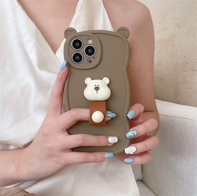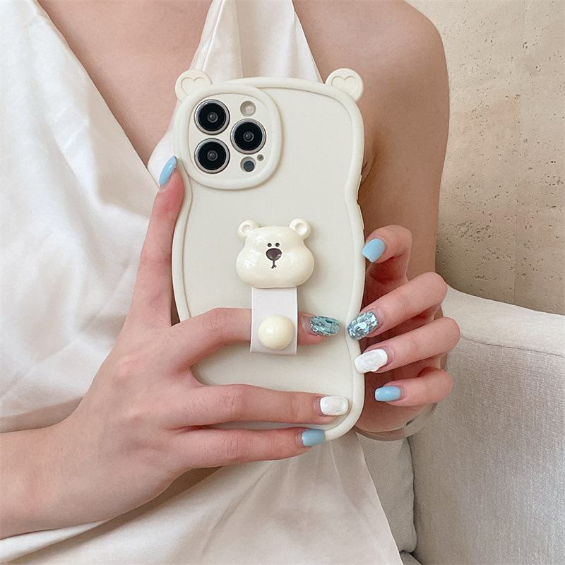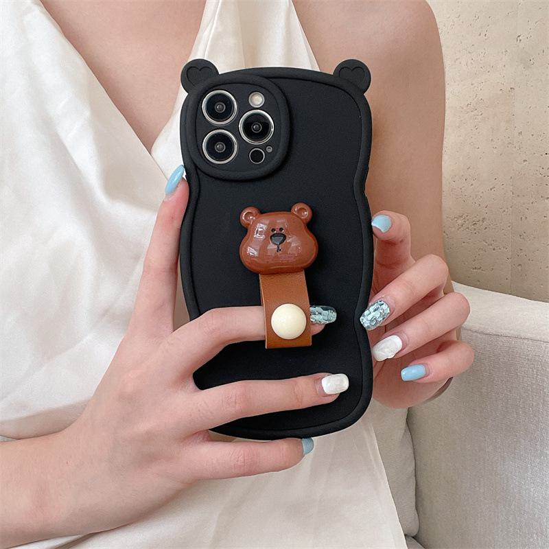 Силиконовый чехол-кольцо с мультяшным медведем для Apple 15Promax, защита от падений и полное покрытие с милыми мягкими ушками