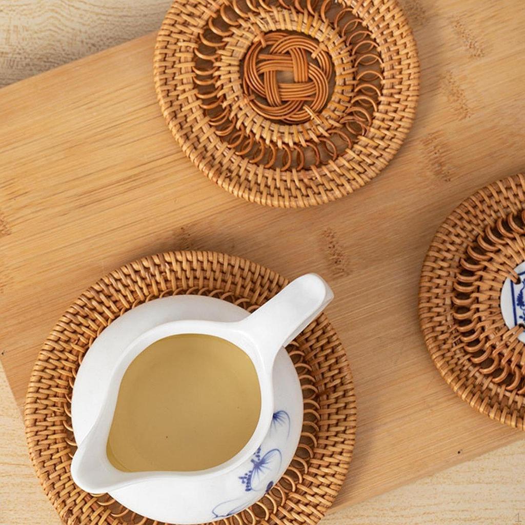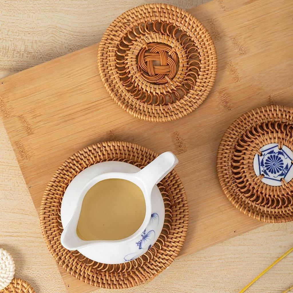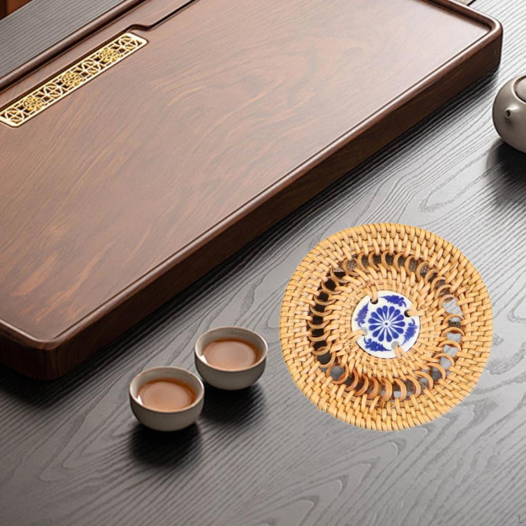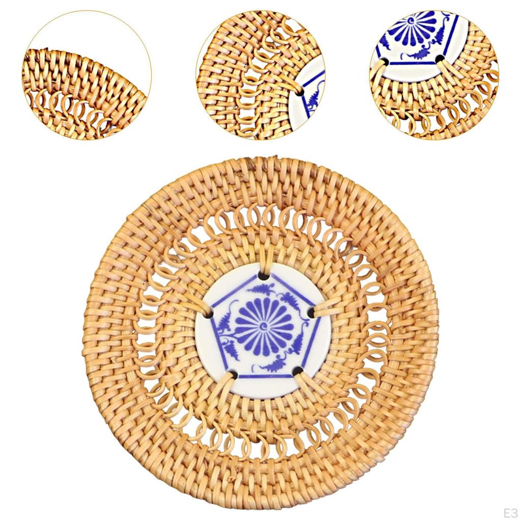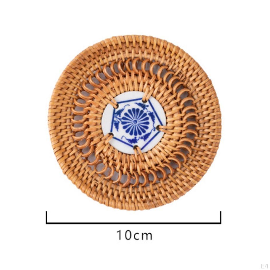 Круглый плетеный подстаканник из ротанга, бохо, фермерский, нескользящий плетеный подстаканник для стола в помещении