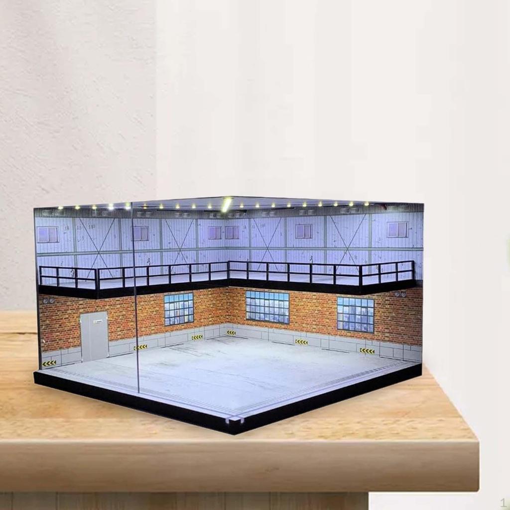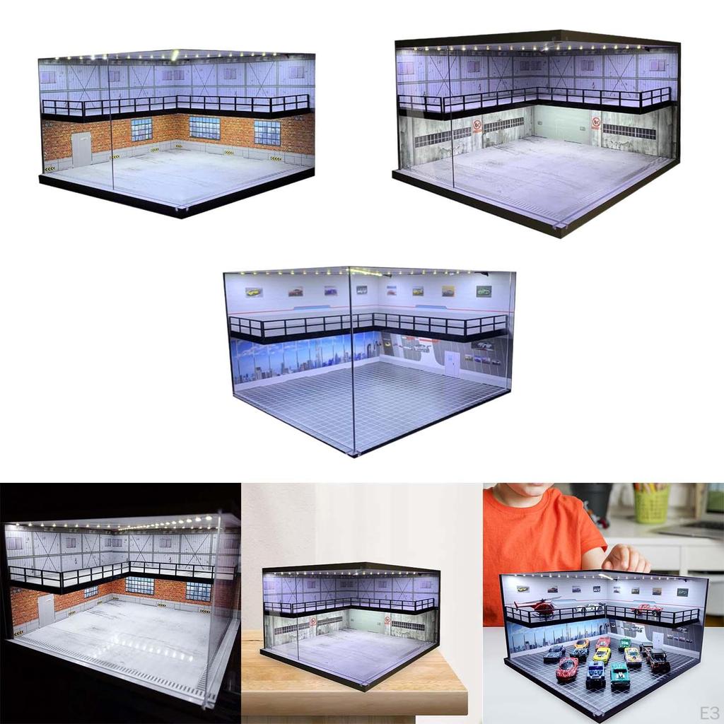 - 【С освещением】: Модель витрины в гараже имеет реалистичную сцену парковки и оснащена встроенным светодиодным фонарем.. Просто включите переключатель, чтобы осветить сцену.