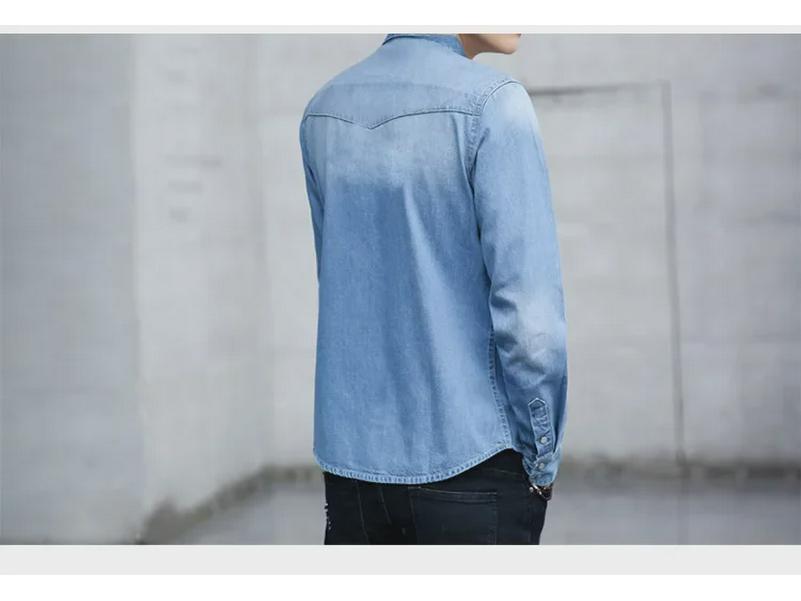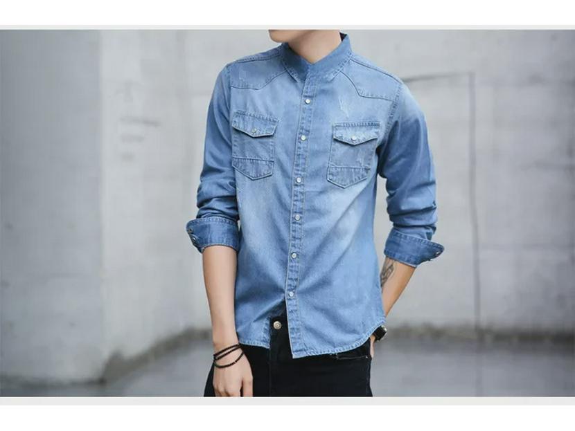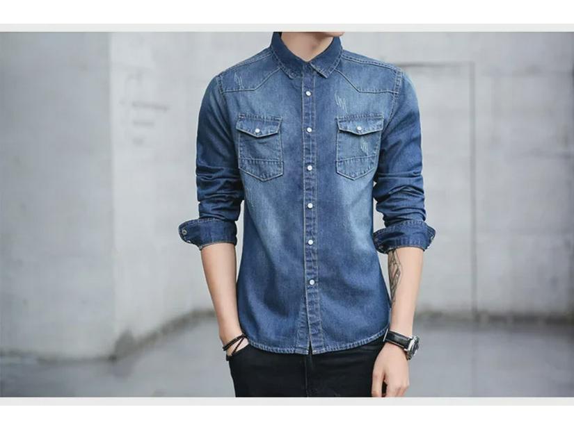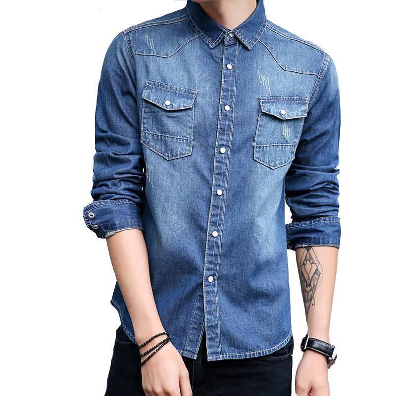 Корейская облегающая джинсовая рубашка для мужчин, идеально подходит для весеннего и осеннего сезонов