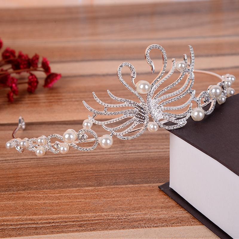 Новый свадебный головной убор с жемчугом и лебедем, корона, свадебная корона со стразами, свадебные аксессуары, корона, аксессуары для волос