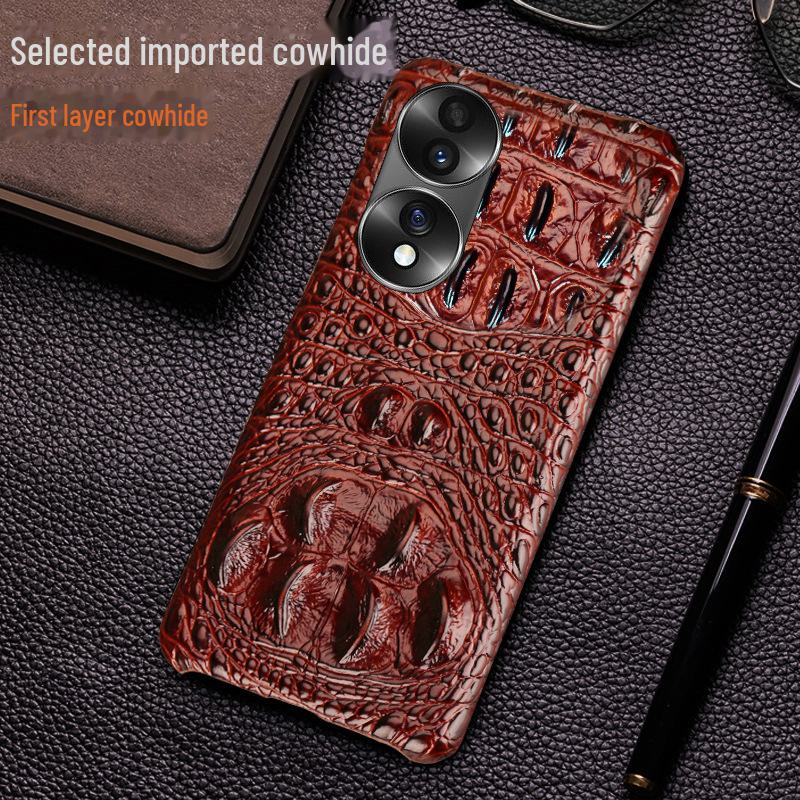 Защитный чехол из натуральной кожи для Honor 70/70SE/70Pro: Череп крокодила полупакет