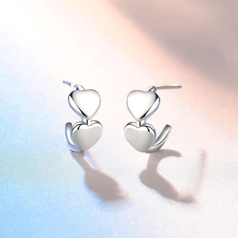 Серьги-гвоздики в форме сердца из чистого серебра S999, женские, холодный ветер, Doppel Herz Arc, особые серьги, милые, девичьи, стильные серьги