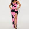 Сексуальное платье с разрезом по бокам и цветочным принтом для женщин, глубокий V-образный вырез, длинные платья без рукавов с высокой талией, Femme Bodycon, модное вечернее элегантное платье для женщин
