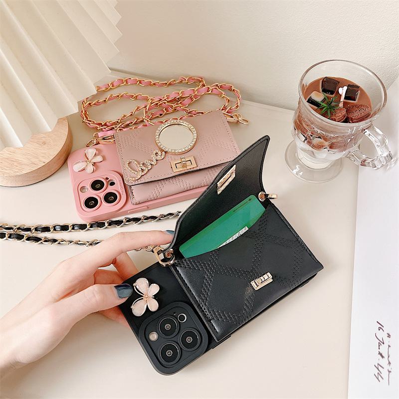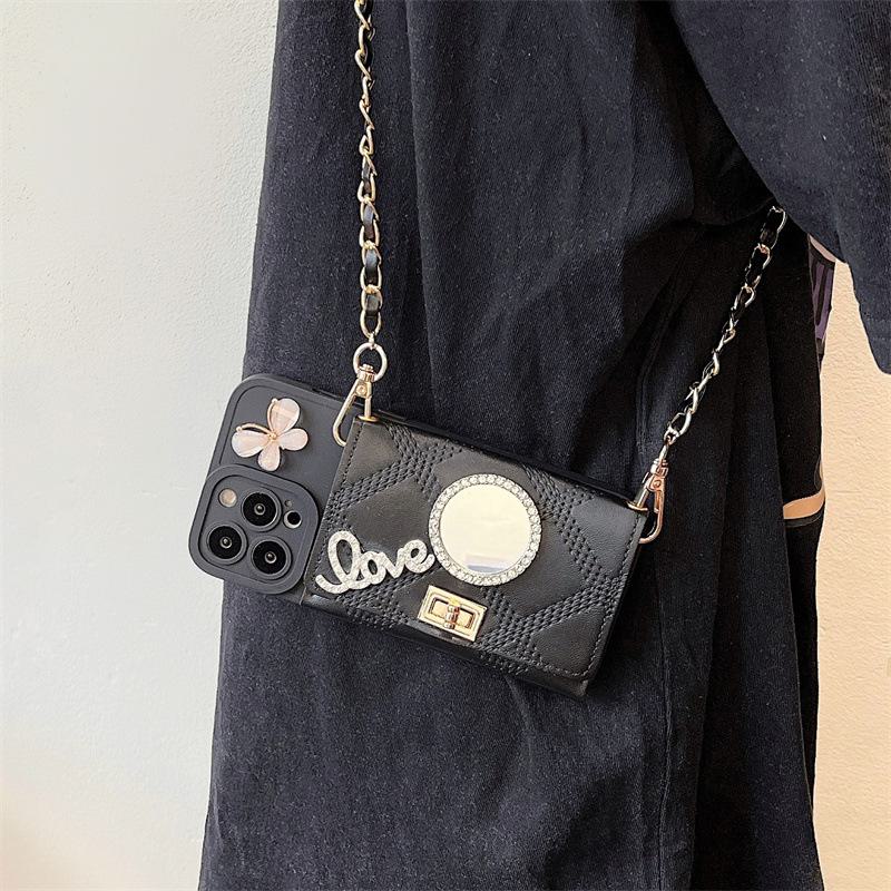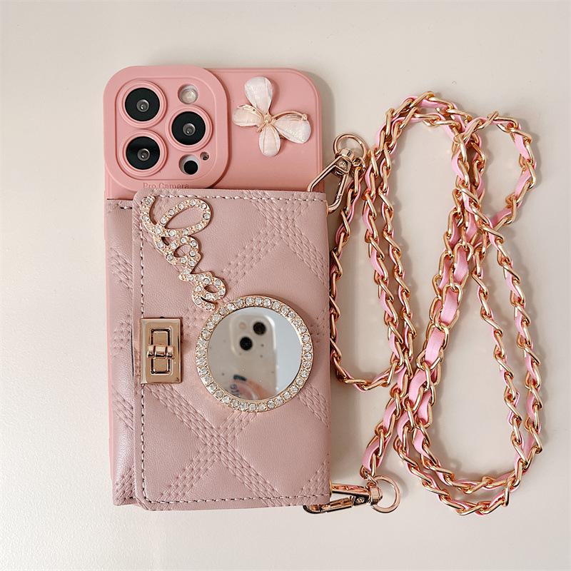 Силиконовый чехол Apple 14Promax с сумочкой-цепочкой и зеркалом со стразами для iPhone 13 — модель Goddess