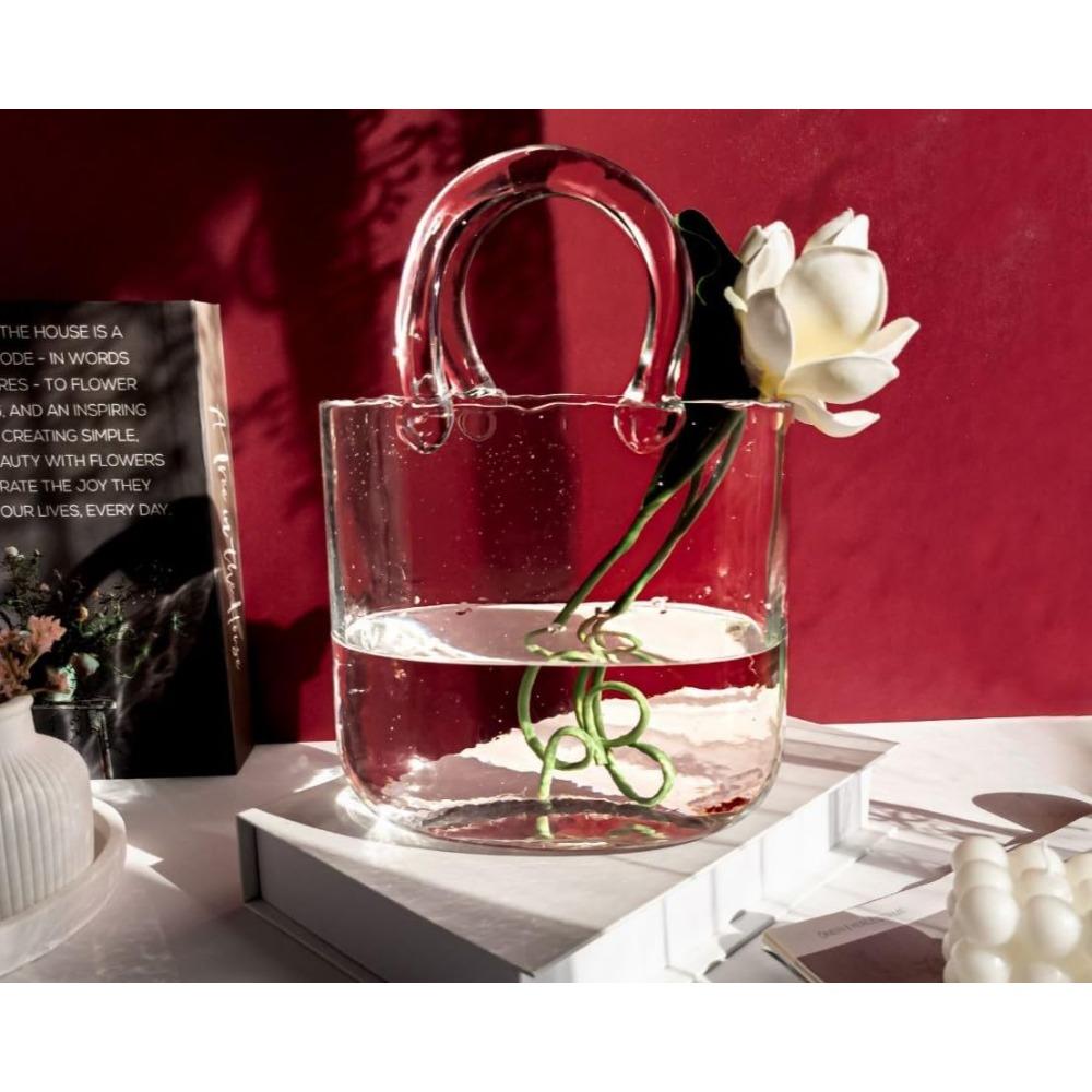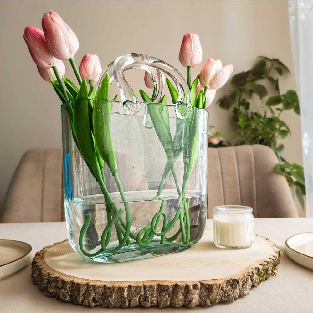 10 дюймов - Прозрачная, классная и милая ваза для центральных предметов - Сумочка Уникальная ваза для цветов Декоративная - Ваза с широким горлышком для декора