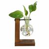 Прозрачная ваза с деревянной подставкой, стеклянный настольный горшок для гидропонных растений, декор для кофейни