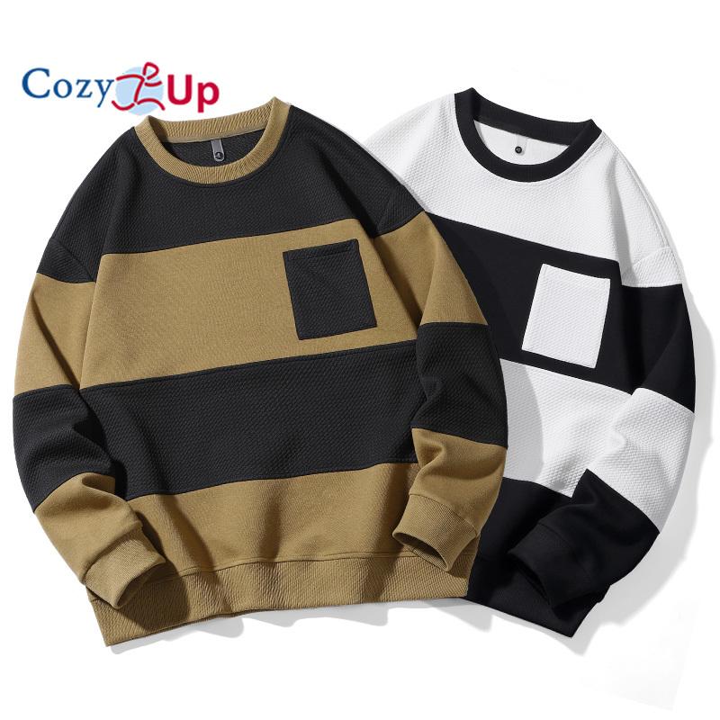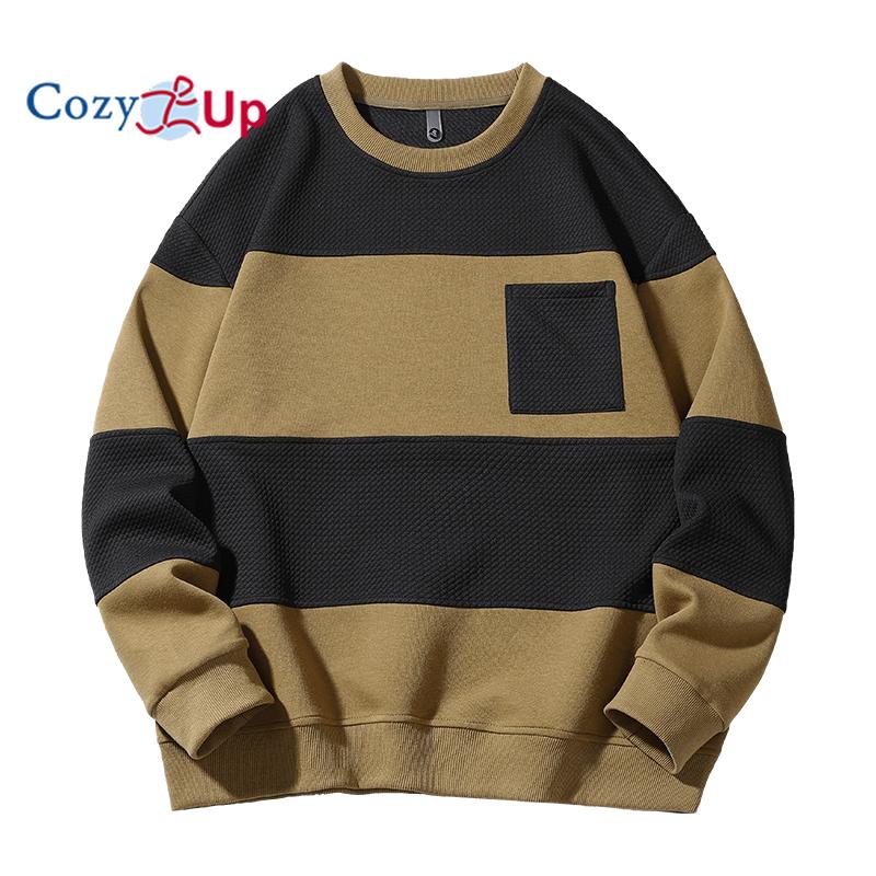 Cozy Up Мужская толстовка с цветными блоками, пуловер с круглым вырезом и длинным рукавом, повседневные топы в рубчик в стиле пэчворк на осень