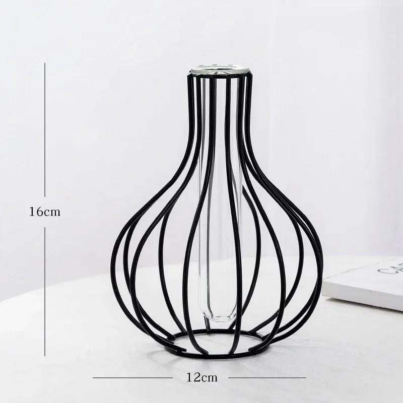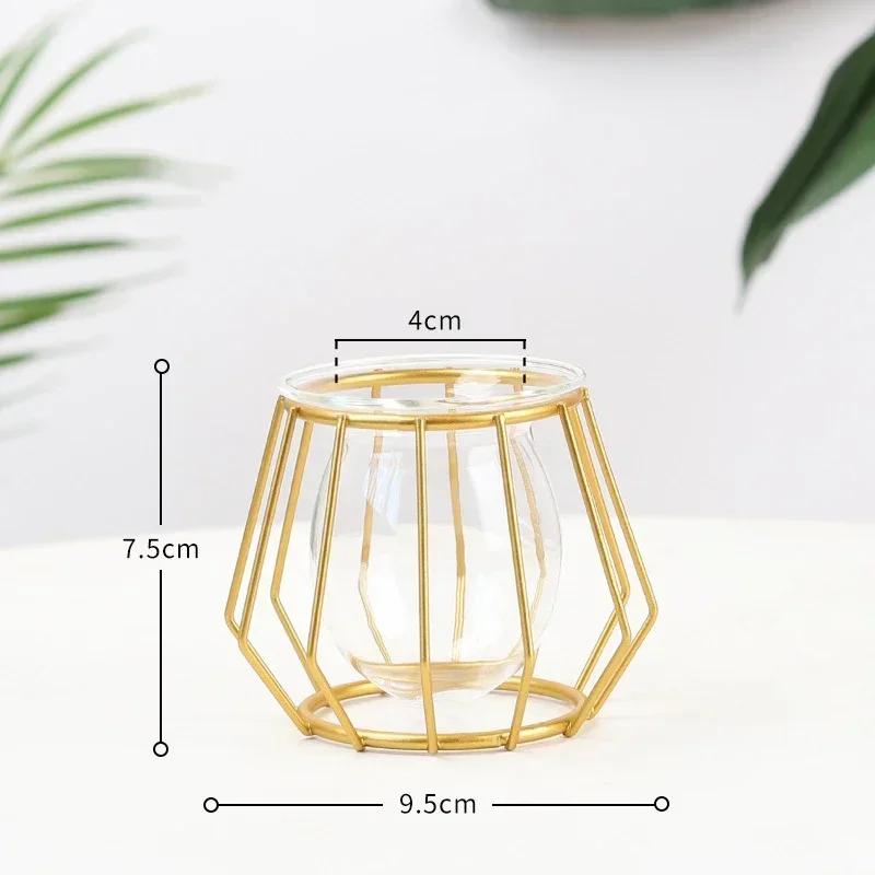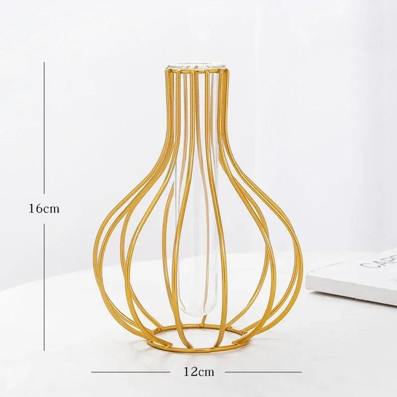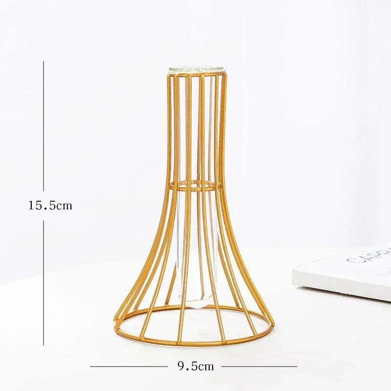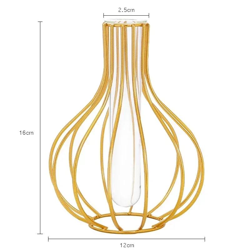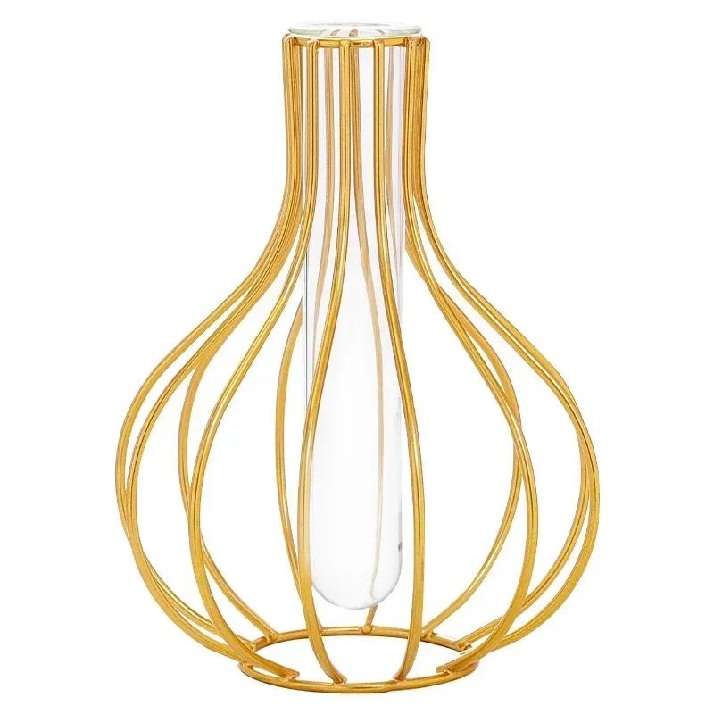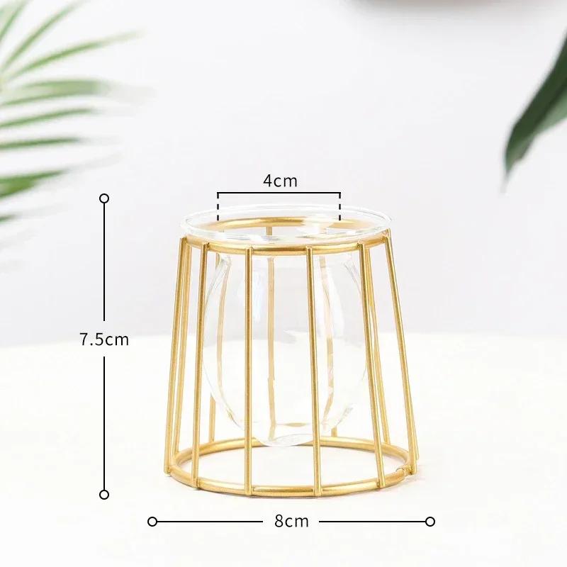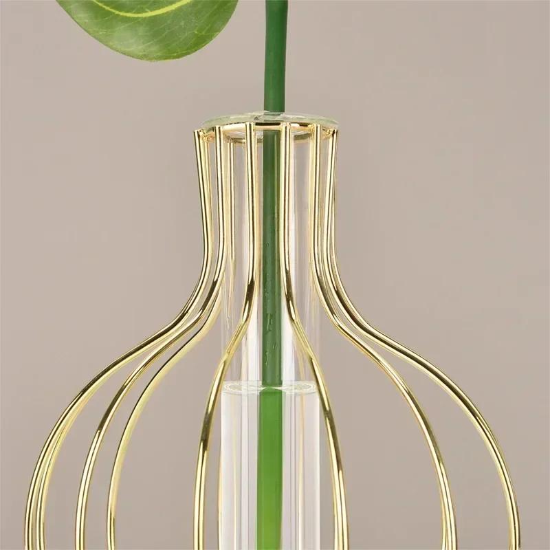 Простая стеклянная ваза, золотая гидропонная ваза для цветов, железная геометрическая стеклянная пробирка, металлический держатель для растений, украшение для дома