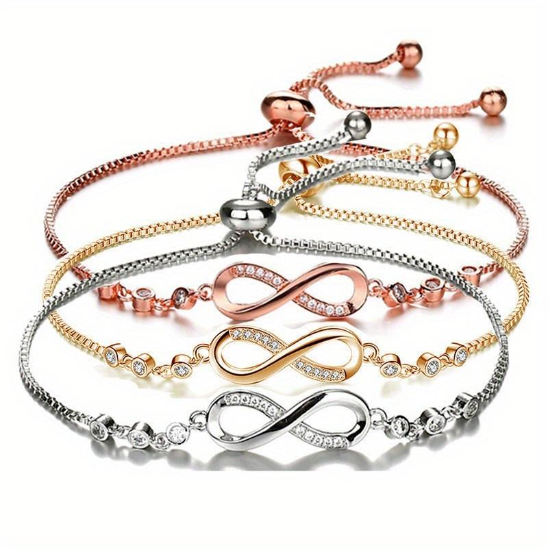 Браслет из 8 символов, регулируемый браслет «Бесконечность» с искусственными кристаллами, женский простой модный браслет, ювелирные изделия, идеальный подарок на любой случай