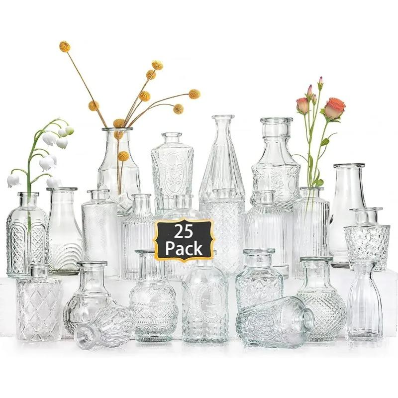 Набор ваз со стеклянными бутонами из 25 маленьких прозрачных ваз для цветов. Винтажные вазы оптом для центральных элементов. Мини-стеклянная ваза в ассортименте.