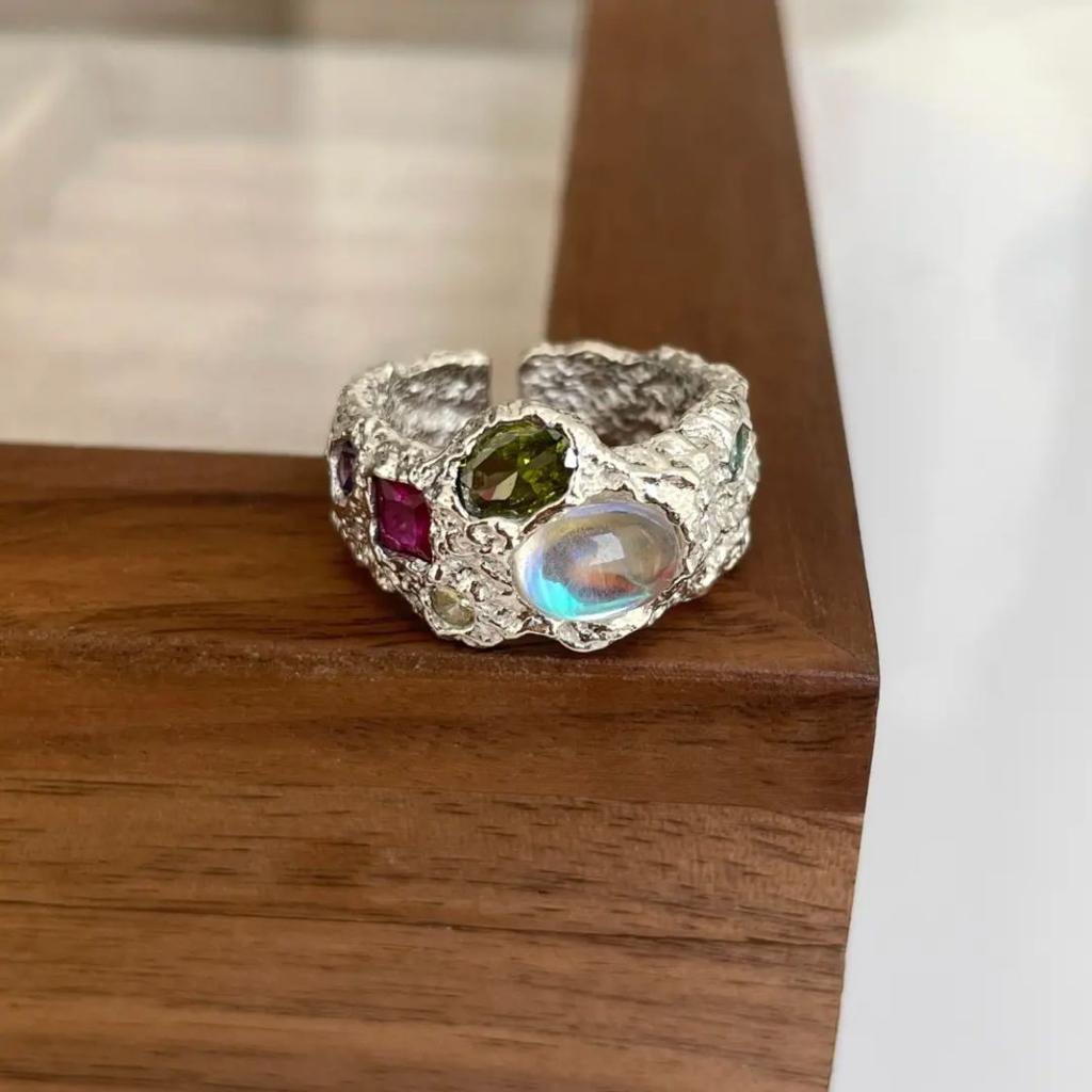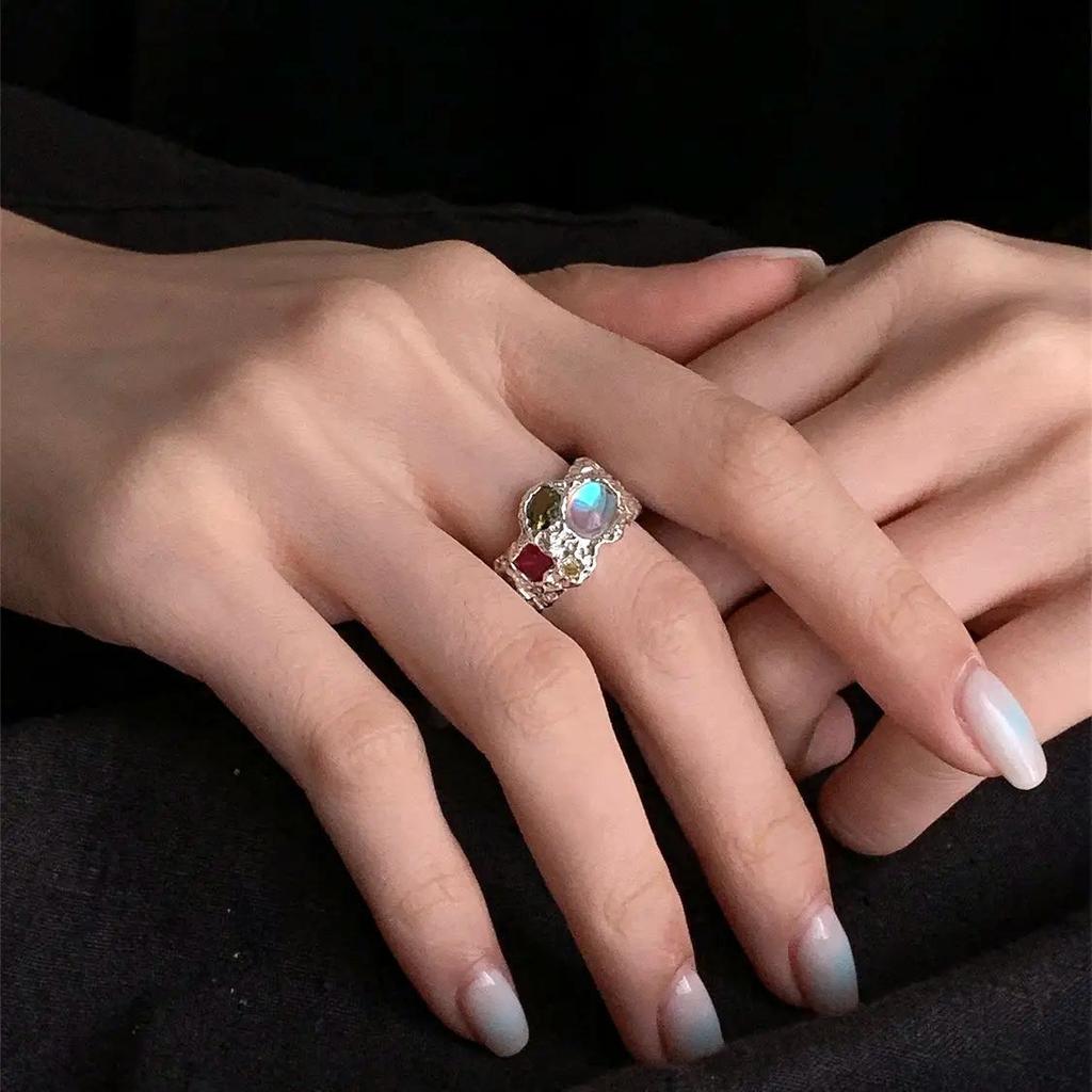 Кольцо из стерлингового серебра с драгоценным камнем, бриллиантом и лавой, женское кольцо S925, особый дизайн, холодное стильное студенческое кольцо с хвостом