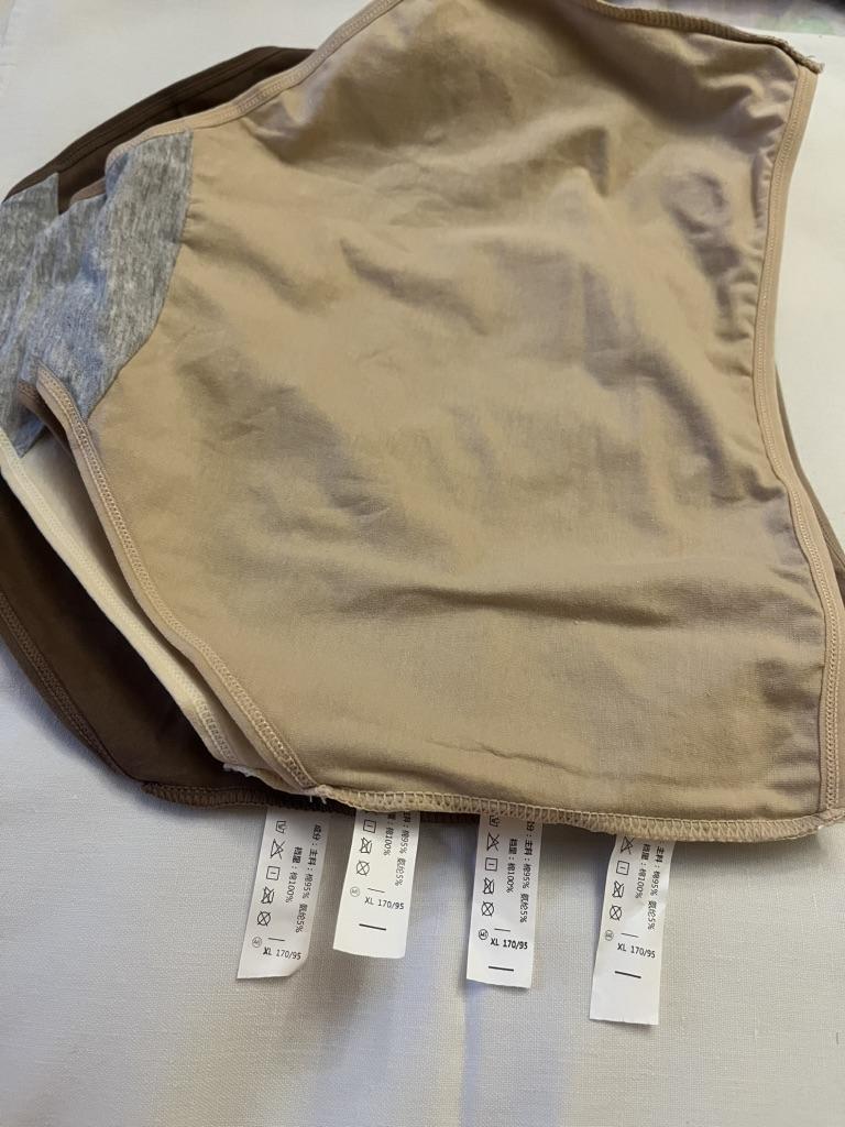 Качество хорошее, материал приятный . На фото видно , что из 4 пар 2 одного размера 1 больше , 1 меньше , может не много не так приложила на фото , но это факт , ОБ 92 , XL не много великоваты , светло коричневые больше подходят по размеру , остальные большие