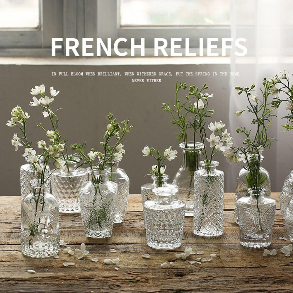 INS мини свадебная стеклянная ваза для цветов с тиснением в стиле ретро, прозрачная ваза для гидропоники, настольные украшения, украшение для дома