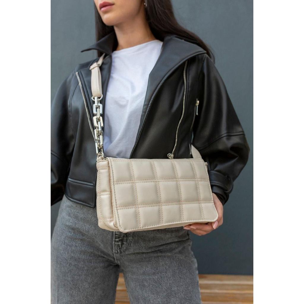 Женская бежевая пластиковая сумка на плечо с цепочкой