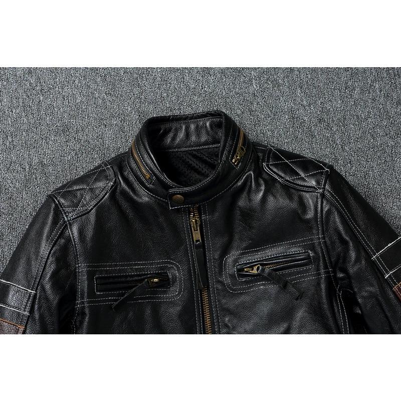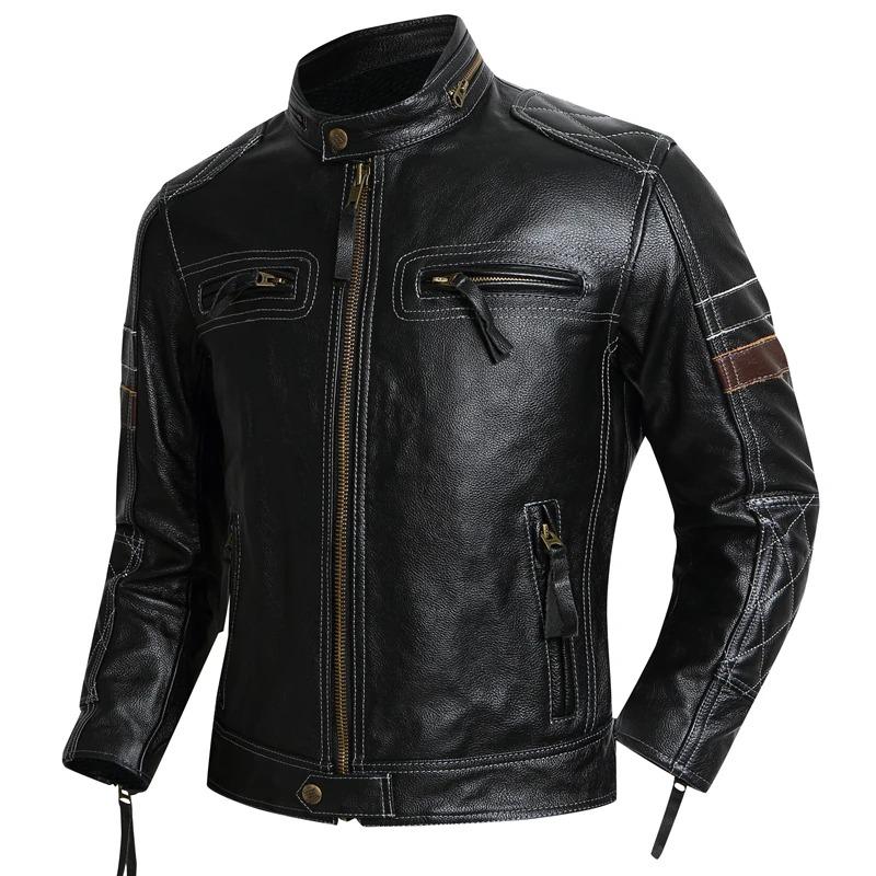 Мотоциклетные куртки Защитная мужская кожаная куртка из натуральной воловьей кожи Мотоциклетное пальто Одежда для верховой езды Chaquetas Cuero Para Hombre