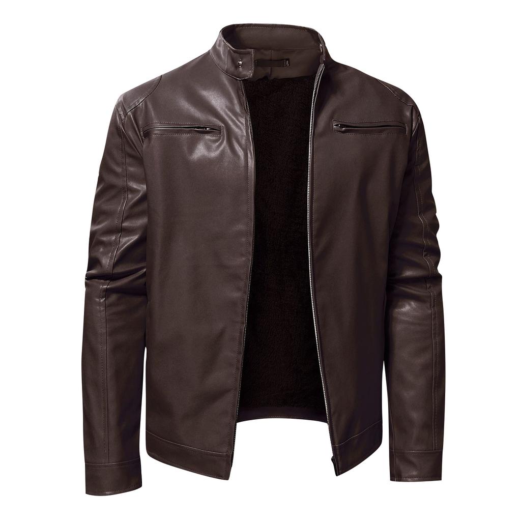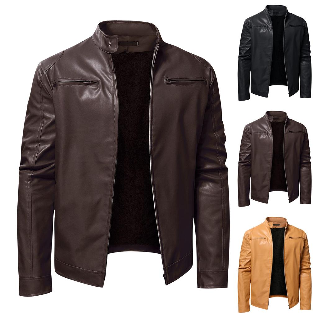 Модные мужские осенне-зимние теплые повседневные кожаные куртки с длинным рукавом на молнии, пальто, топ