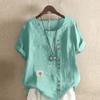 Женская модная футболка с круглым вырезом и коротким рукавом, повседневная хлопковая льняная рубашка с рисунком, свободная летняя блузка с принтом одуванчика для отдыха, топы