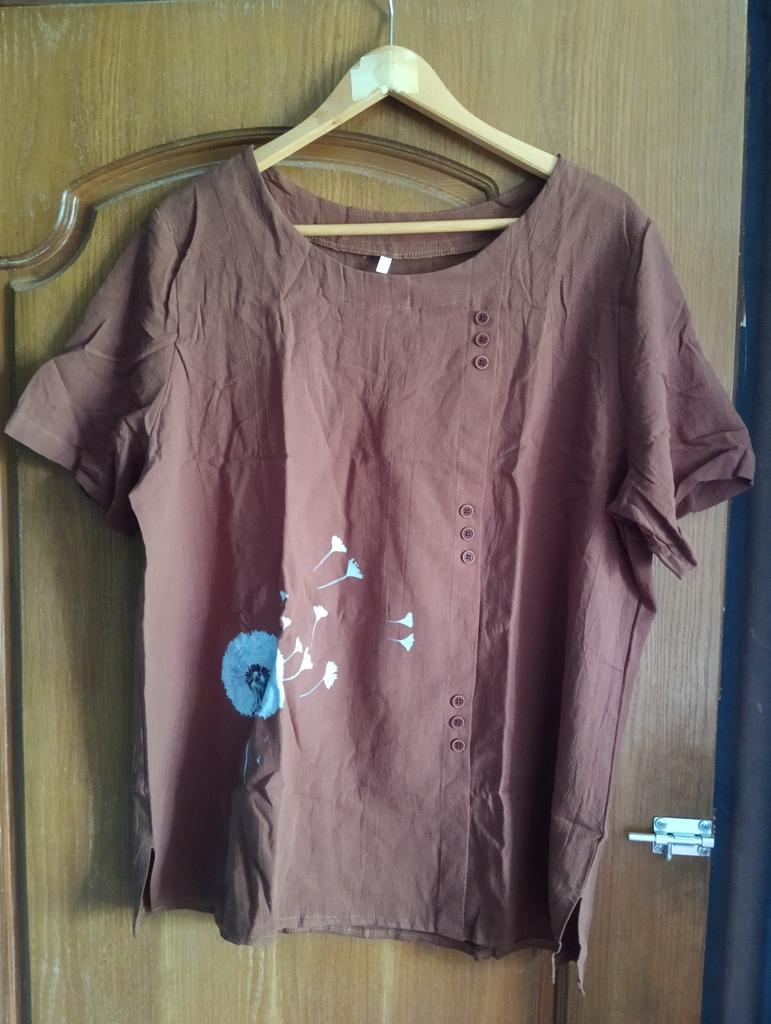 Цвет отличается, просто коричневый спокойный, размер подошёл на мой 50. Не помню чтобы выбирала с одуванчиками, хотела однотонную терракотовую, но на лето будет хорошо, хб дышащая.